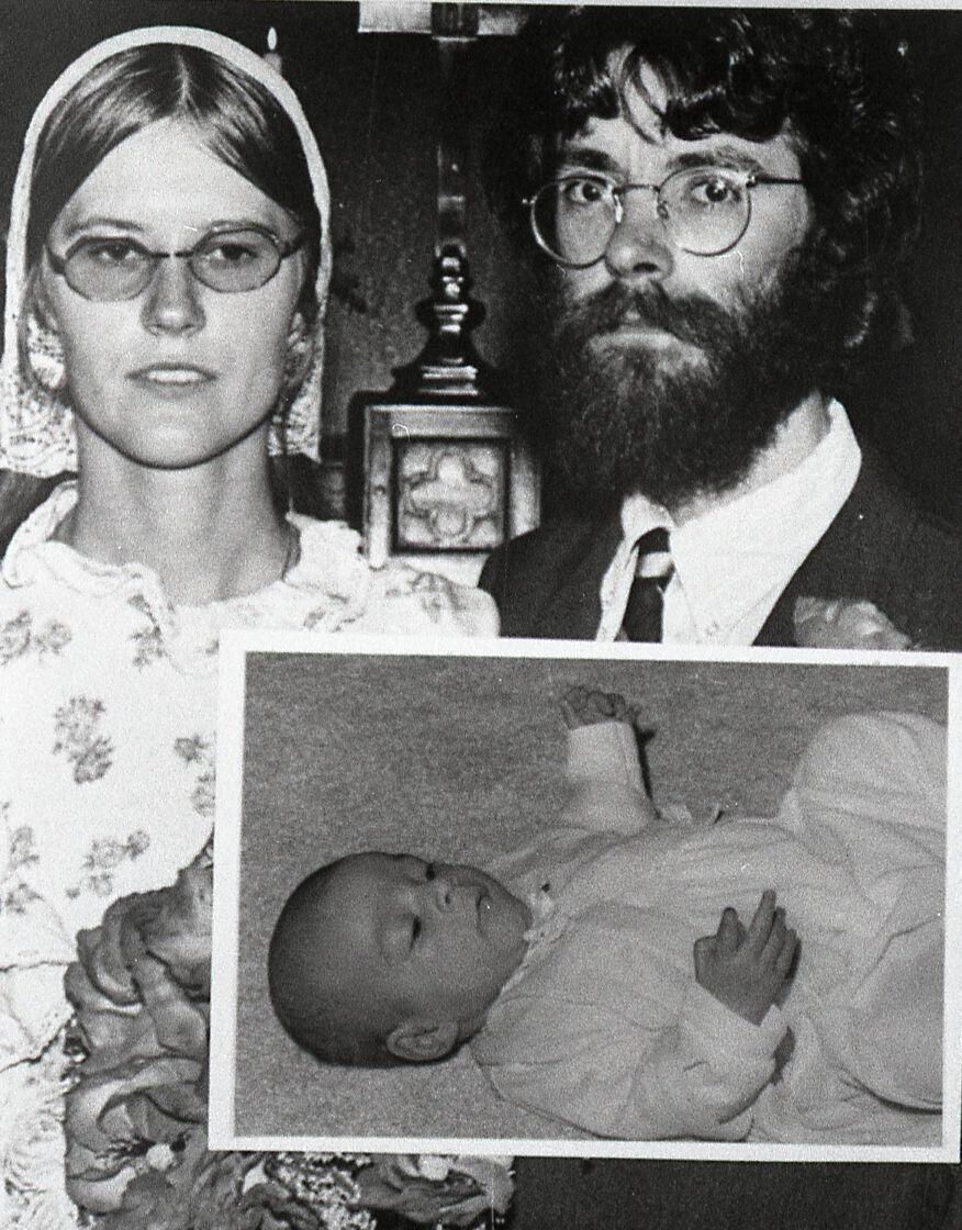 Jennifer Minsky Lynn and Frank Lynn with Nicholas Lynn. Scan of negative from 1980 History of Clinton County page 196.