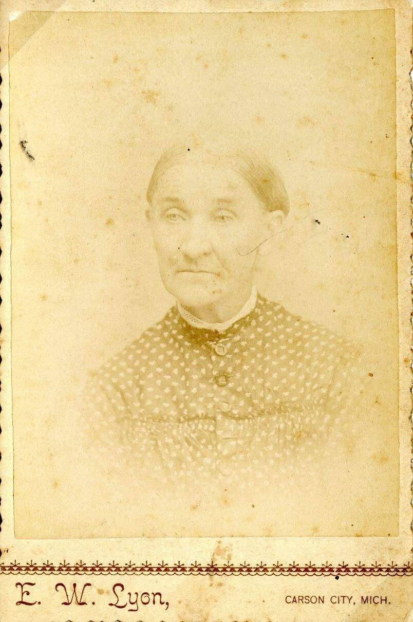 Elizabeth (Whaley) Lyon, wife of Hervey Lyon taken at age 75 c1890. Photo by E. W. Lyon of Carson City, Michigan.