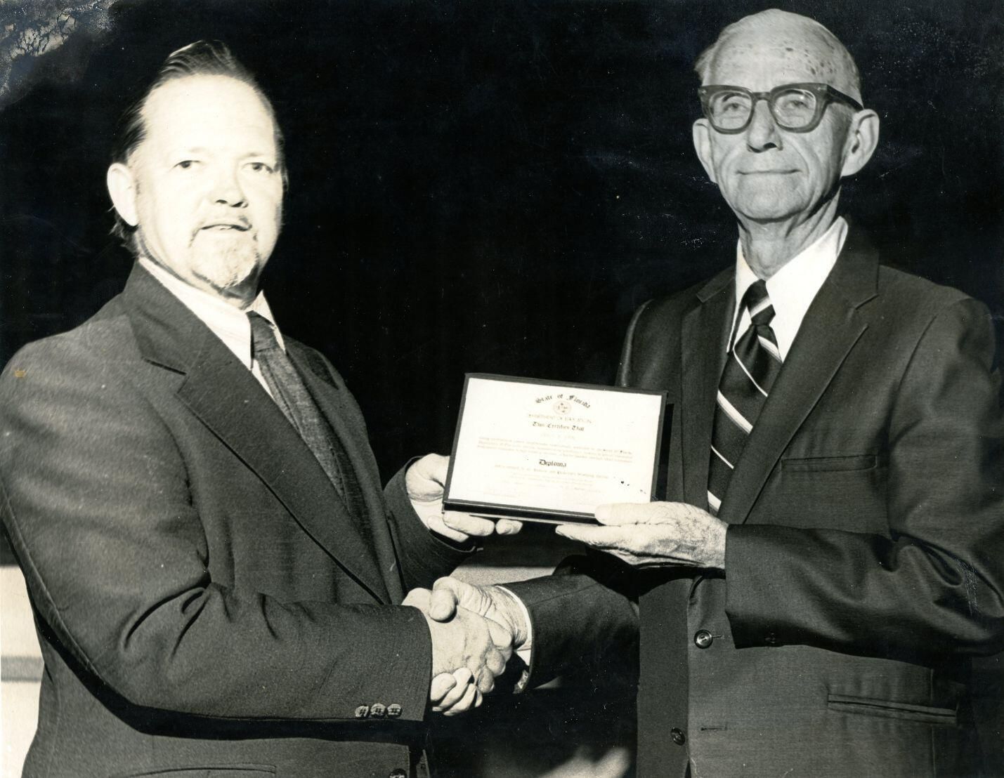 John Hendricks presenting an award to Virgil Lyon.