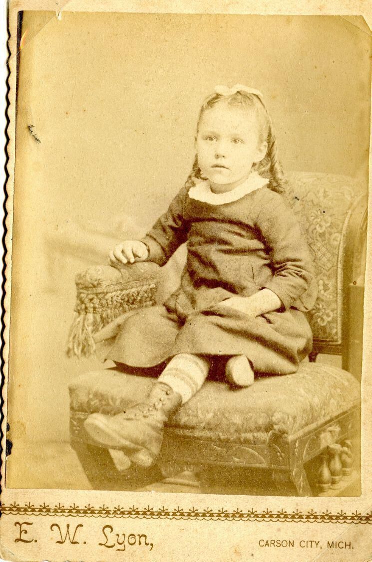 Unidentified Lyon family girl. By E. W. Lyon while in Carson City, Michigan.