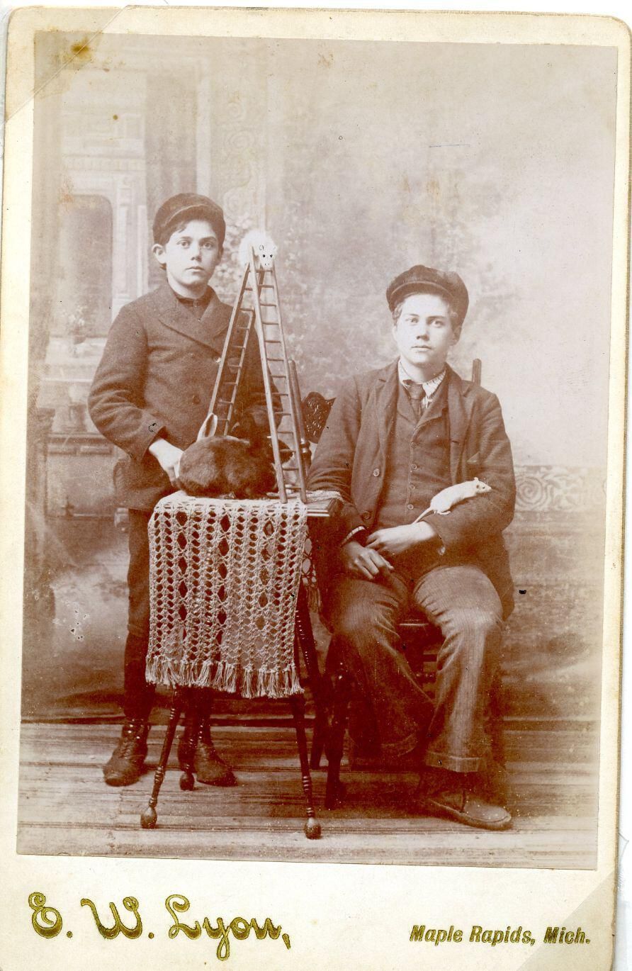 Unidentified Lyon family boys with rabbit and mouse. Probably sons of Elias W. Lyon.