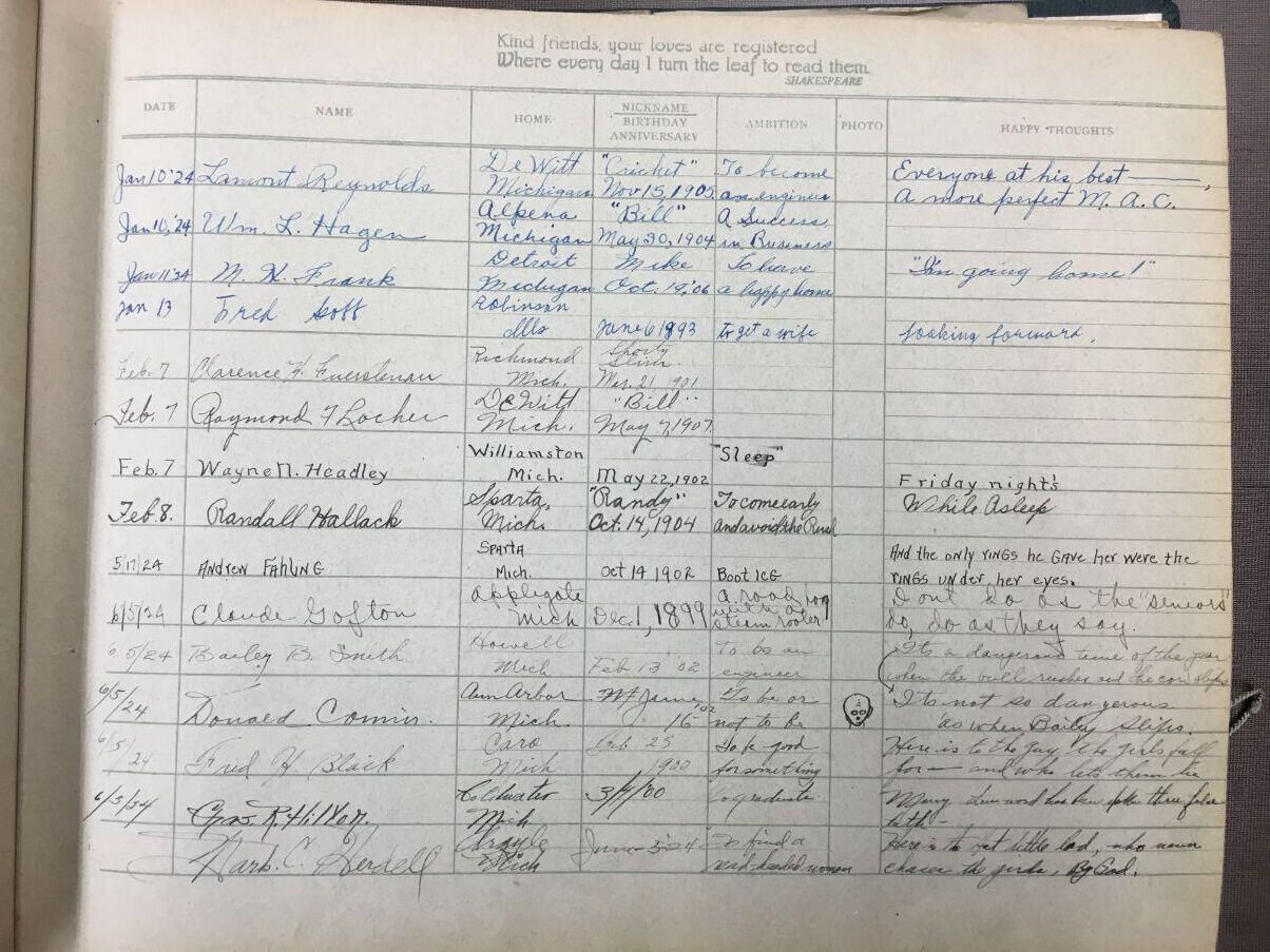 Among the signers is Clarence Fuerstenau, future DeWitt teacher and school superintendent