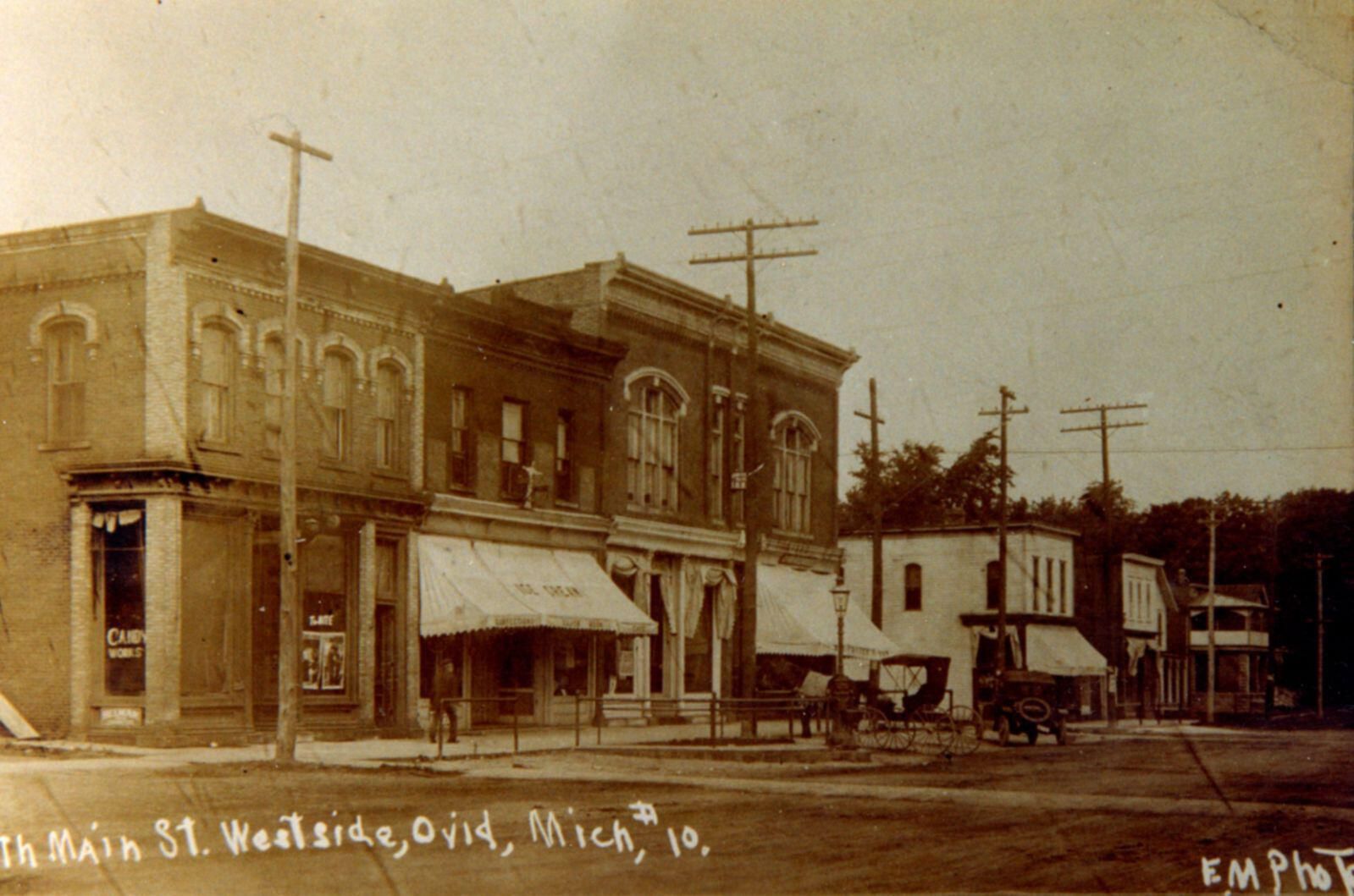 West side of North Main Street, Ovid. Copy of postcard.