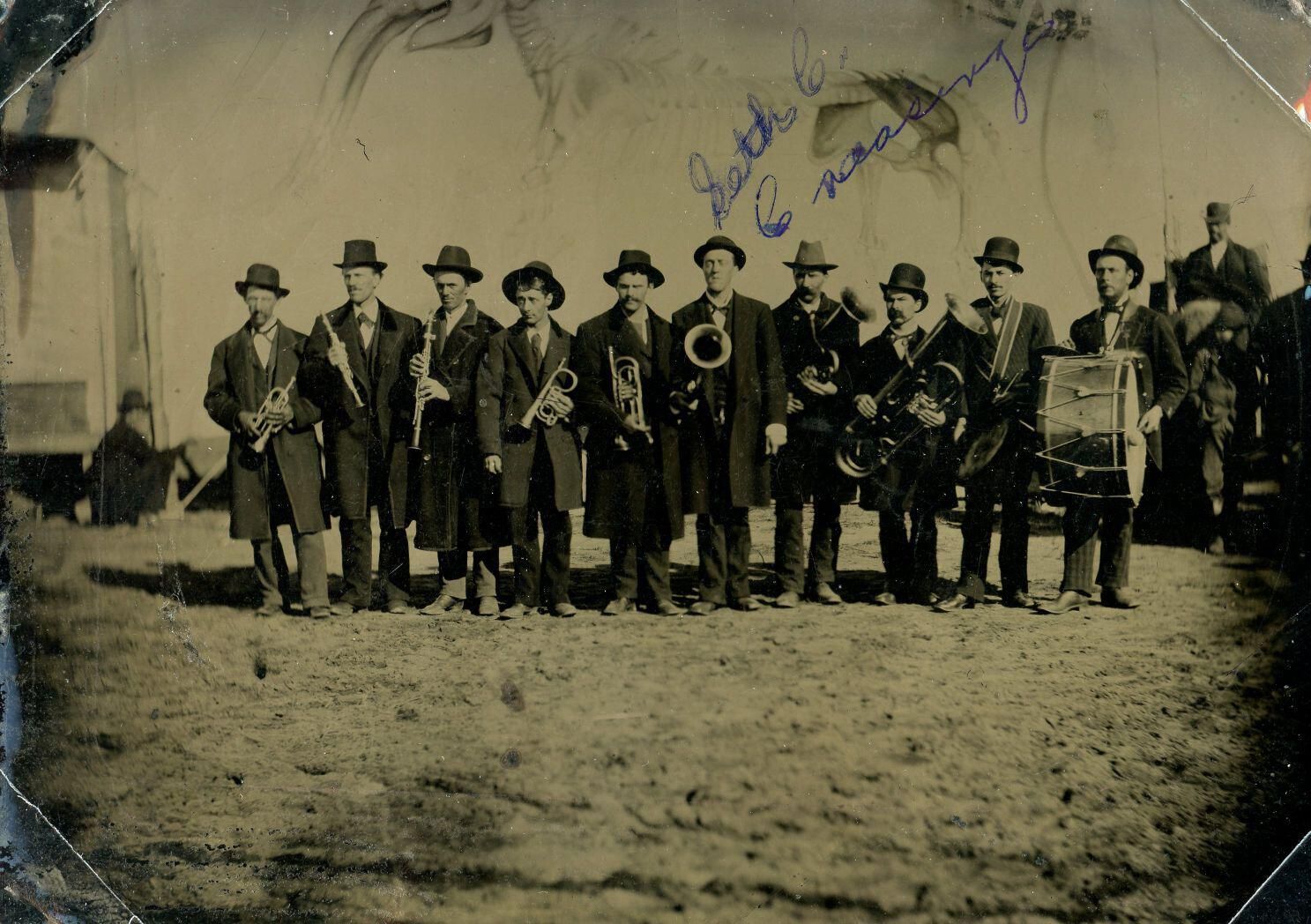 Maple Rapids Cornet Band members were: A. J. Chick, Charles Ferguson, Asa B. Jones, George Whitney, William A. Nixon, Morgan Perigo, Leander Perrigo, F. B. Richards (bass drum), Sanford W. Smith, and Frank Stitts. Rufus H. Hewit was the 1st director.