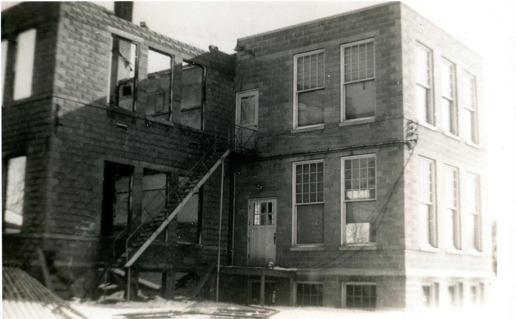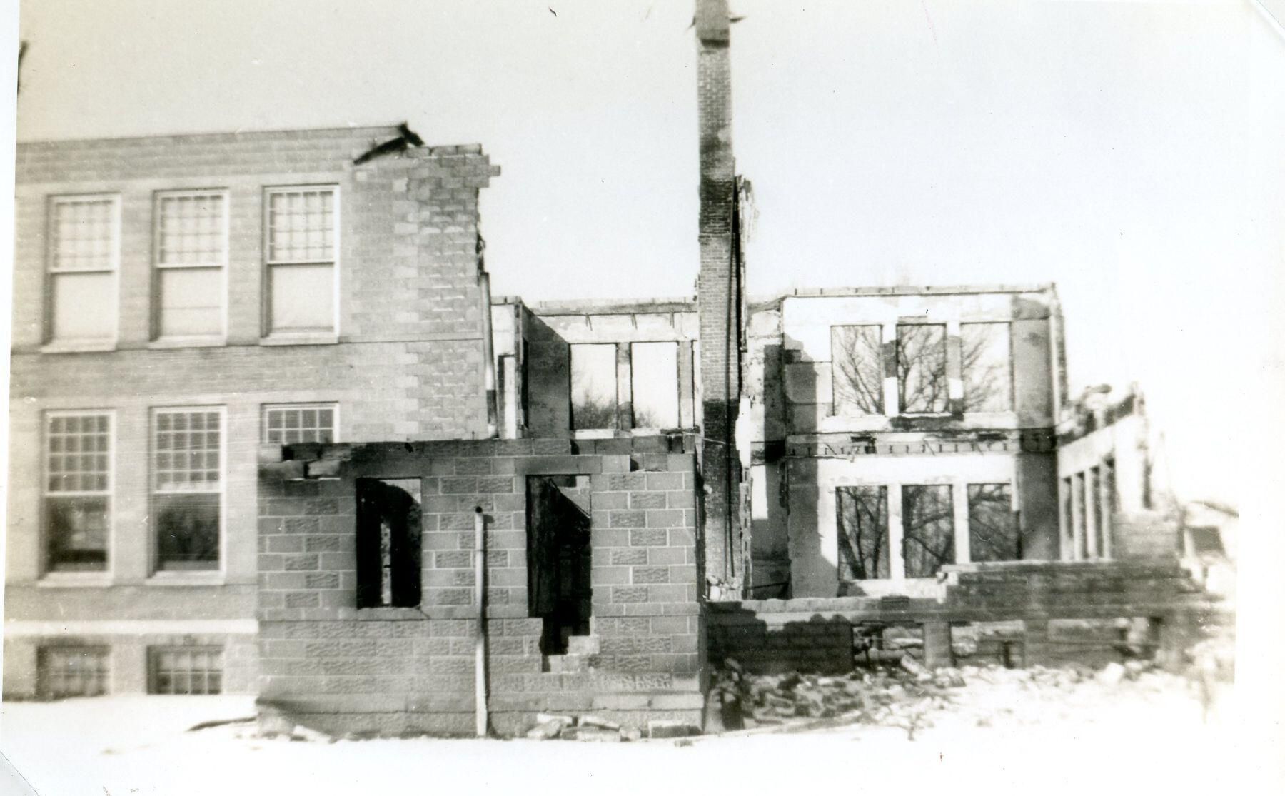 Maple Rapids School fire on January 25, 1945.