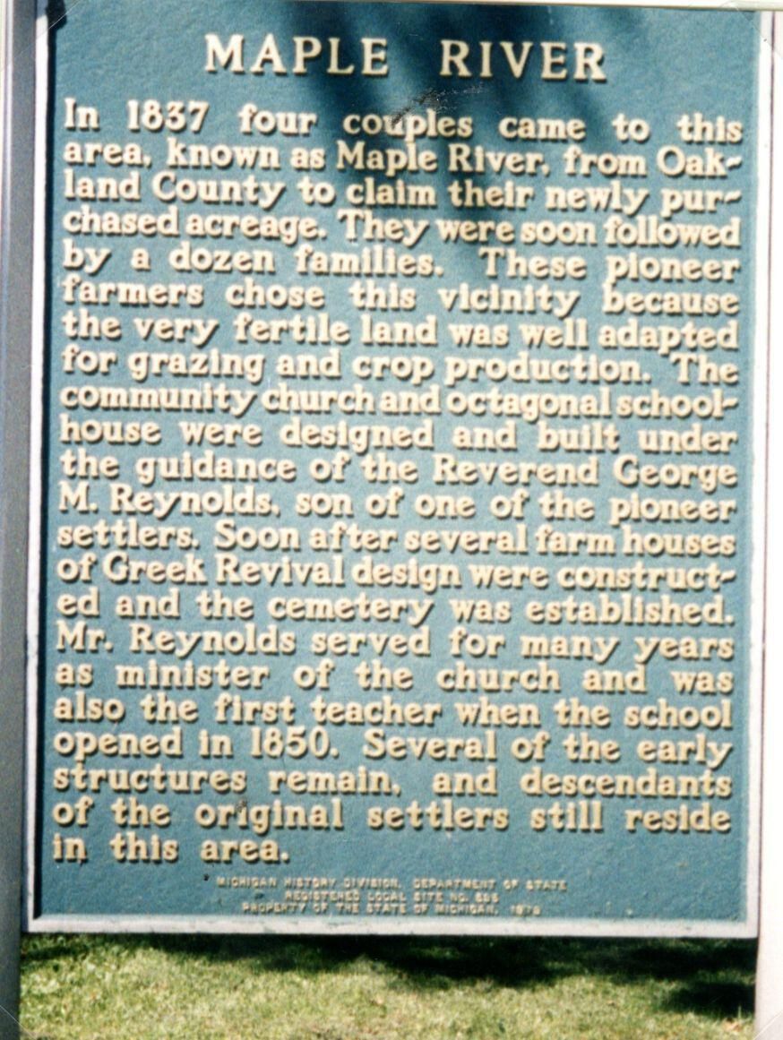 Maple River Michigan Historic Marker near old Round School location in Lebanon Township.