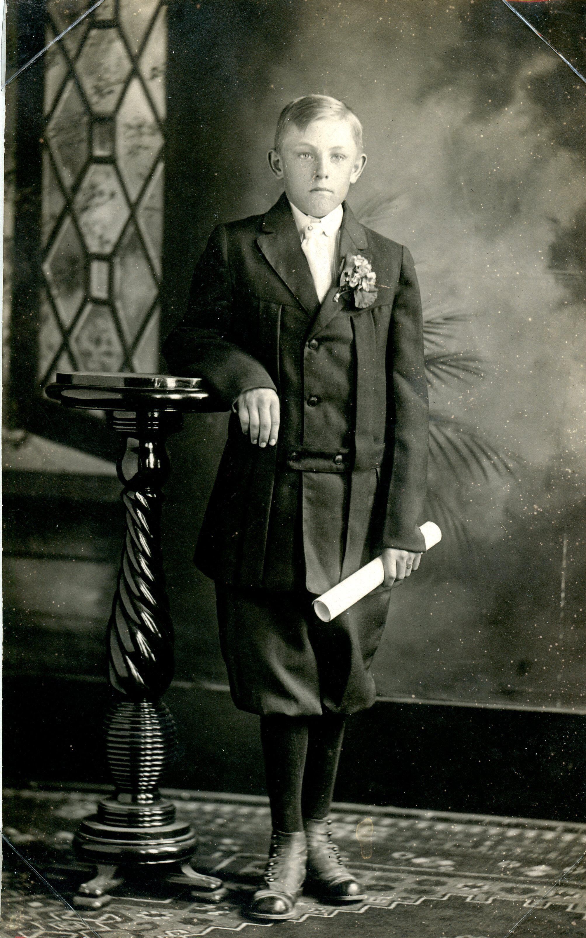Ernest Marten, son of Theodore and Mary Marten of Riley Twp. Probably 8th grade graduation.
