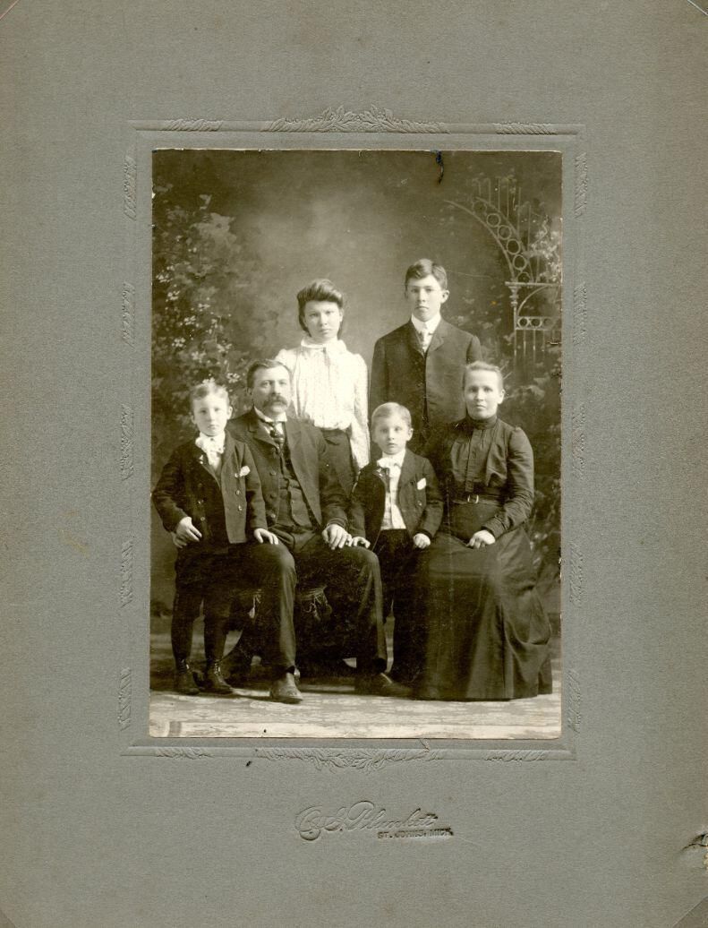 (twins) Ernest Matter and Herman Matter, John Matter, Minnie Matter, (back) Mary Matter, and Edward Matter