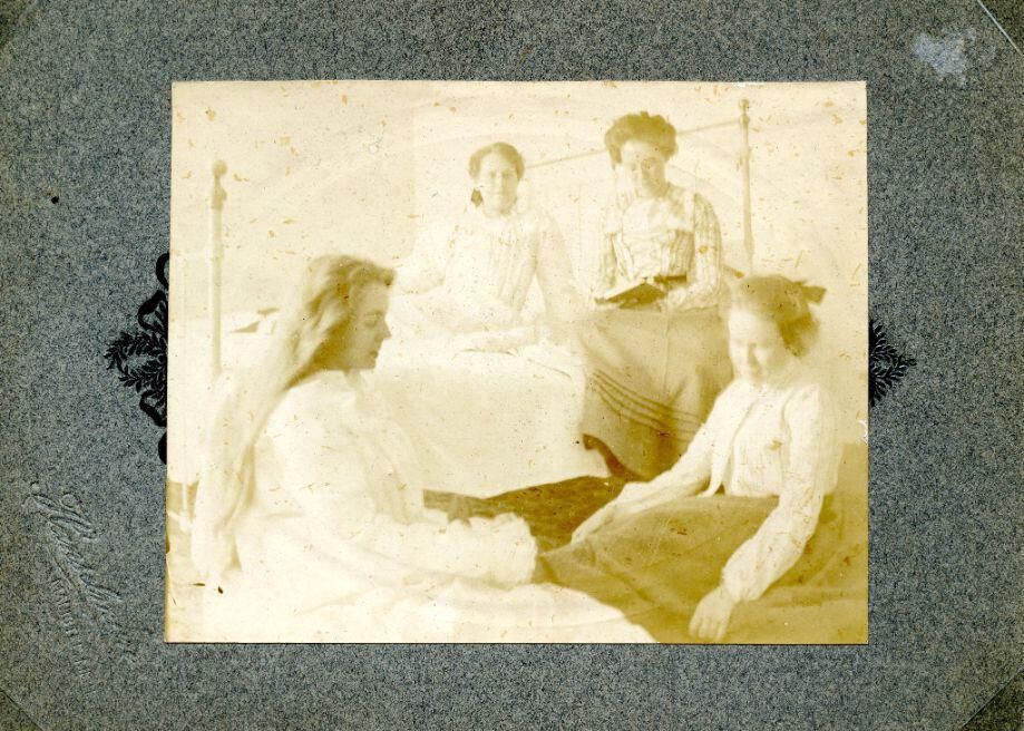 Margaret McDonnell, Bertha Belt, Edna Love, and Mildred Quant. Taken by Hanselman of Manistee, Michigan