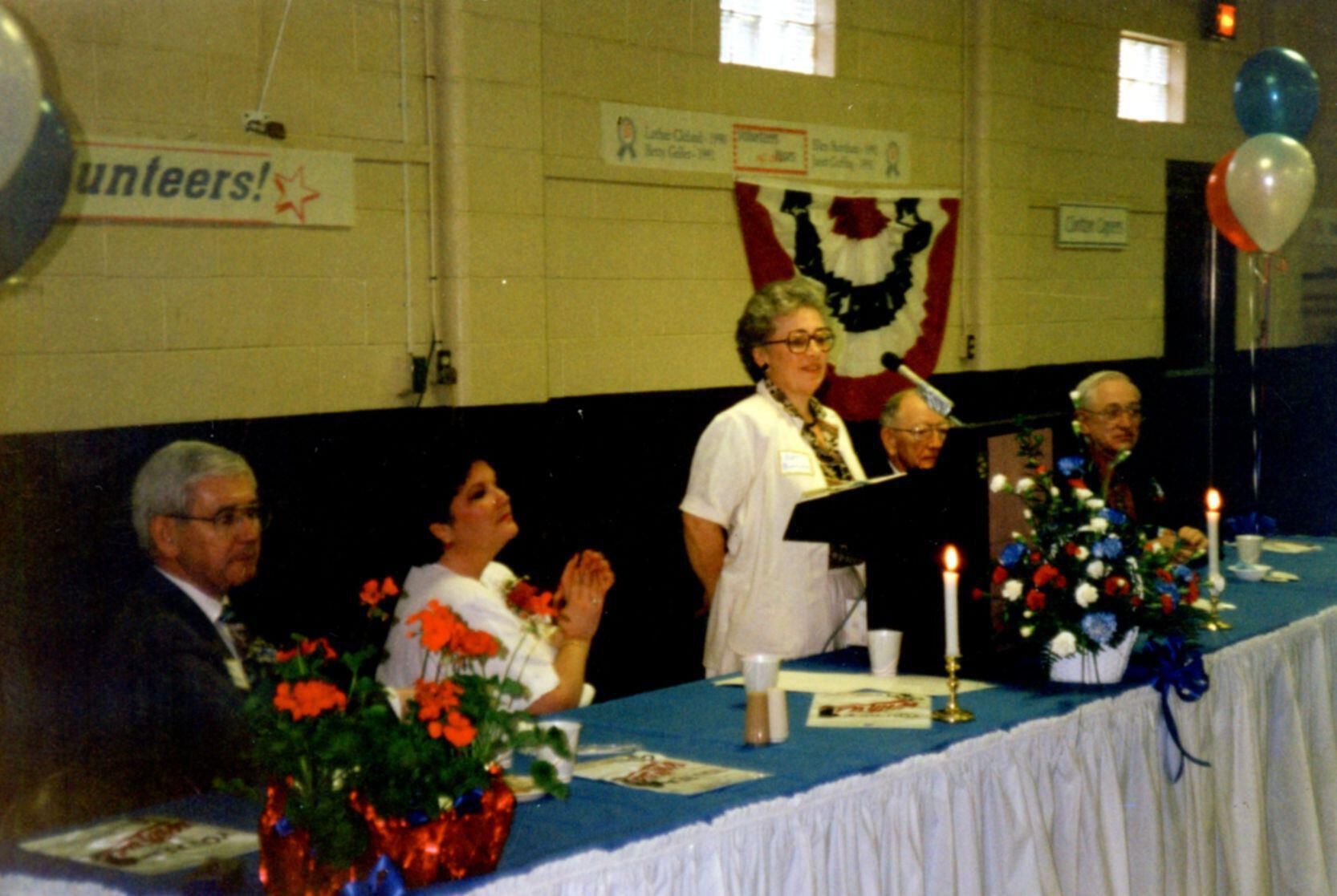 Meals on Wheels dinner at Smith Hall. Paul McNamara, Sue White, and Pat Benedict.