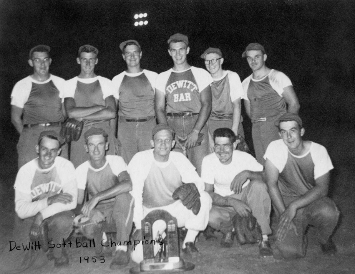 DeWitt Men's Softball Champs - Jack Rice, Cleo Cassel, Ray Minier, Keith Ingalls, and others not identified
