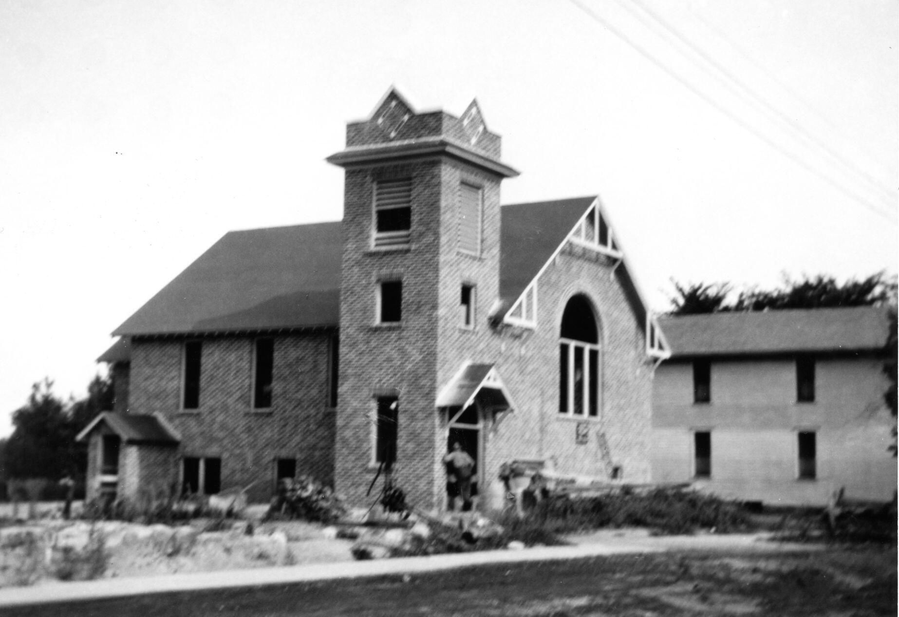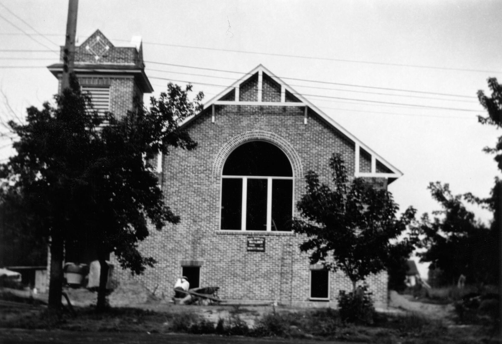DeWitt Methodist Church (3rd building) under construction on N. Bridge Street (Probably part of the Shafley Print Collection)Acquisition