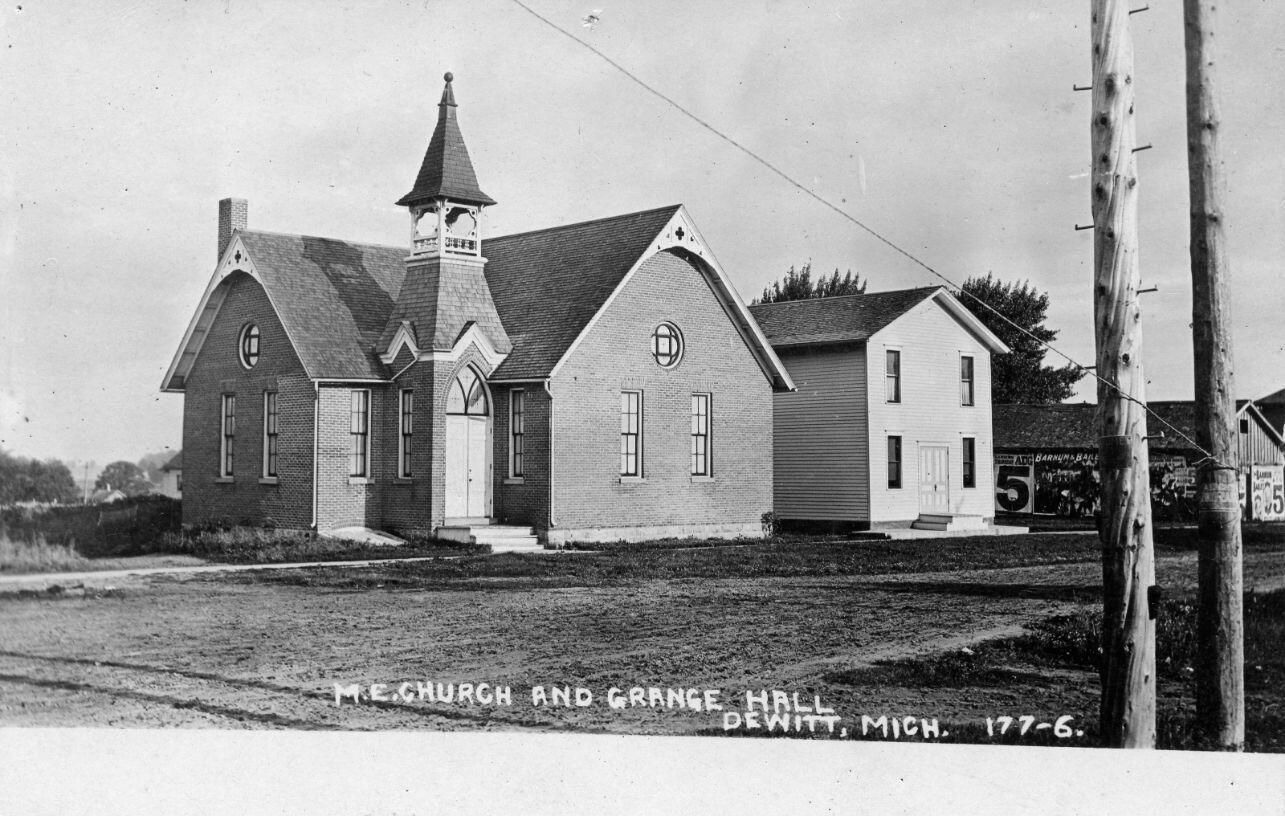 2nd M. E. Church building (burnt March 10, 1928), Grange Hall, Cooper's Shop