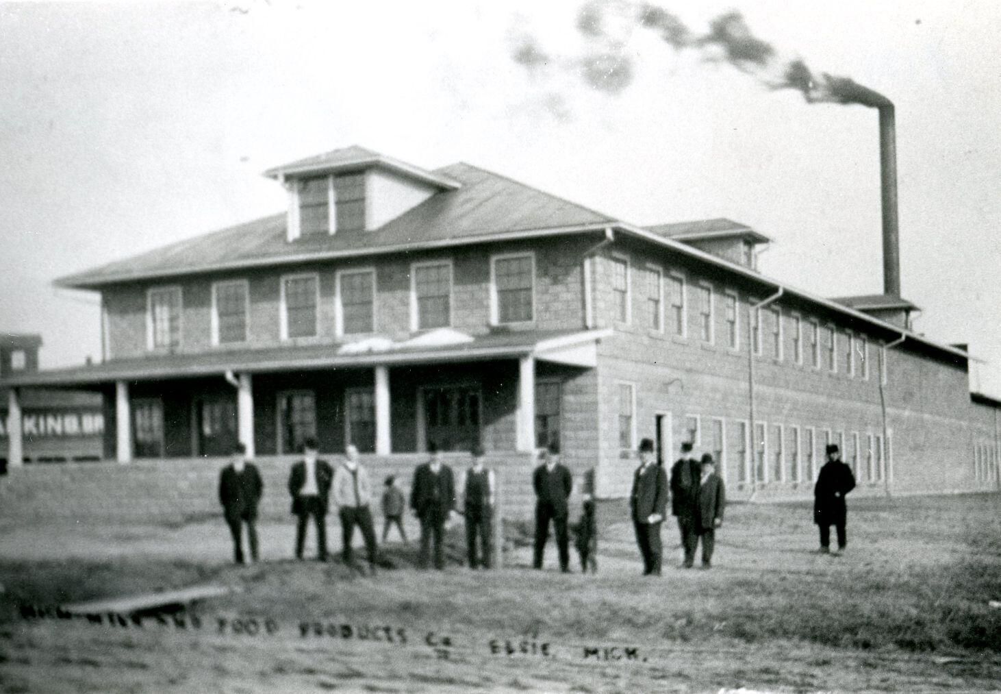Michigan Milk and Food Products Co., Elsie, Michigan. Cheese Factory. Copy of photo used in Clinton County History (1980) page 696.
