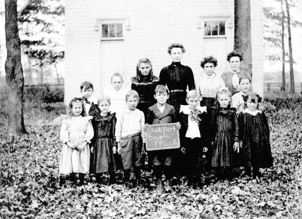 Monroe School, Eagle Township, c1900. Mattie Lowell (teacher). (copy of photo)