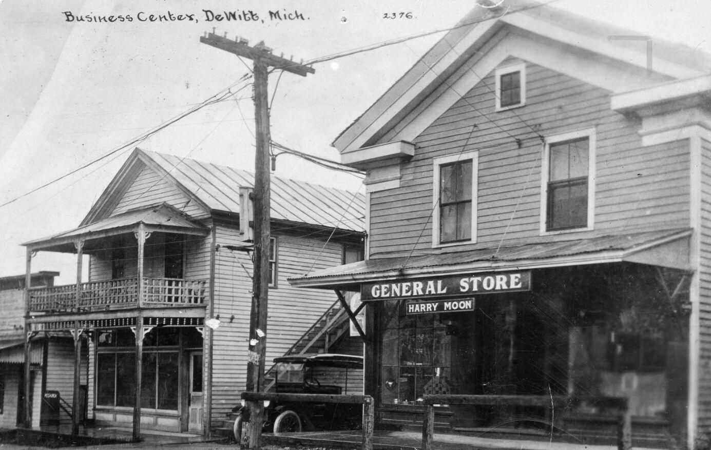 (l) Building was Wood's Undertaking, restaurant, bakery, post office and more at 106 W. Main (r) Harry Moon General Store burned in 1930 (possibly taken by Harry Moon)