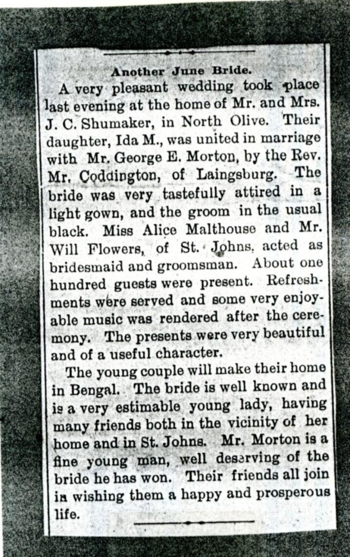 Wedding photo of George E. Morton and Ida M. Shumaker.