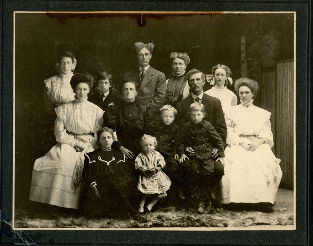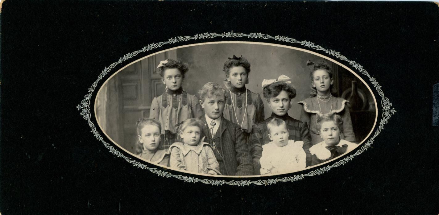 John and Louisa (Foell) Neller family. First photo c1910. Second of the oldest nine children c1904. Neller family history.