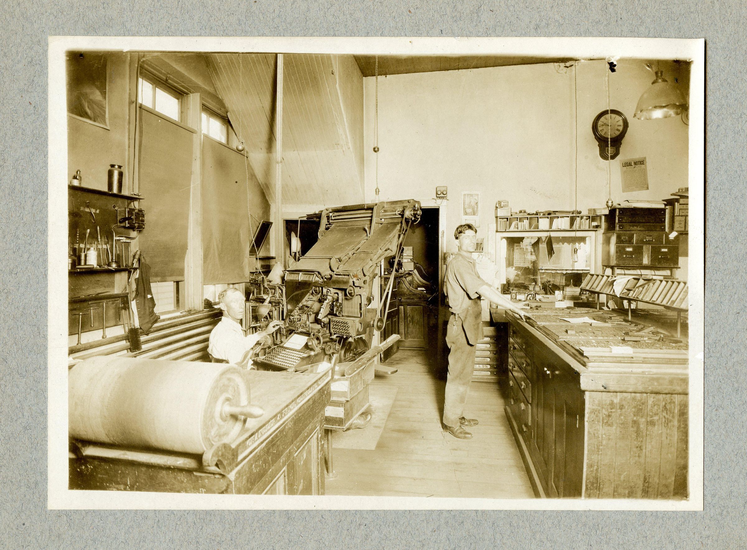 Clinton County Newspaper Print Shop. Was on the NE corner of Walker and Spring Streets in St. Johns. A copy is PI-132-829.