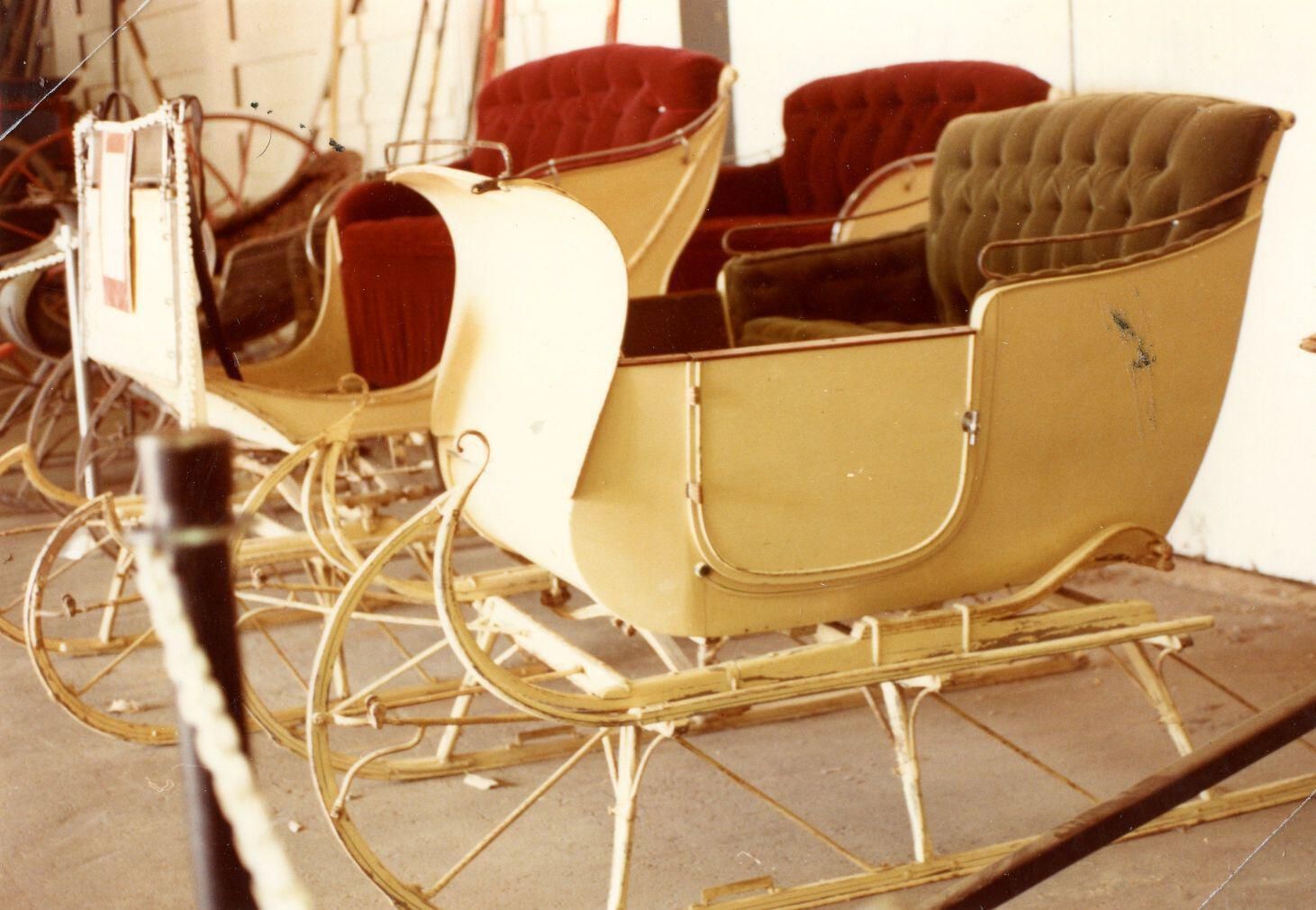 Sleighs at a Kentucky horse farm made by Ovid Carriage Works.