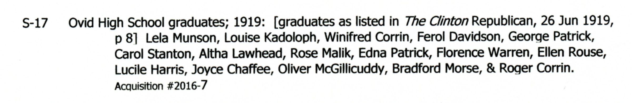 Ovid High School graduating class of 1919.