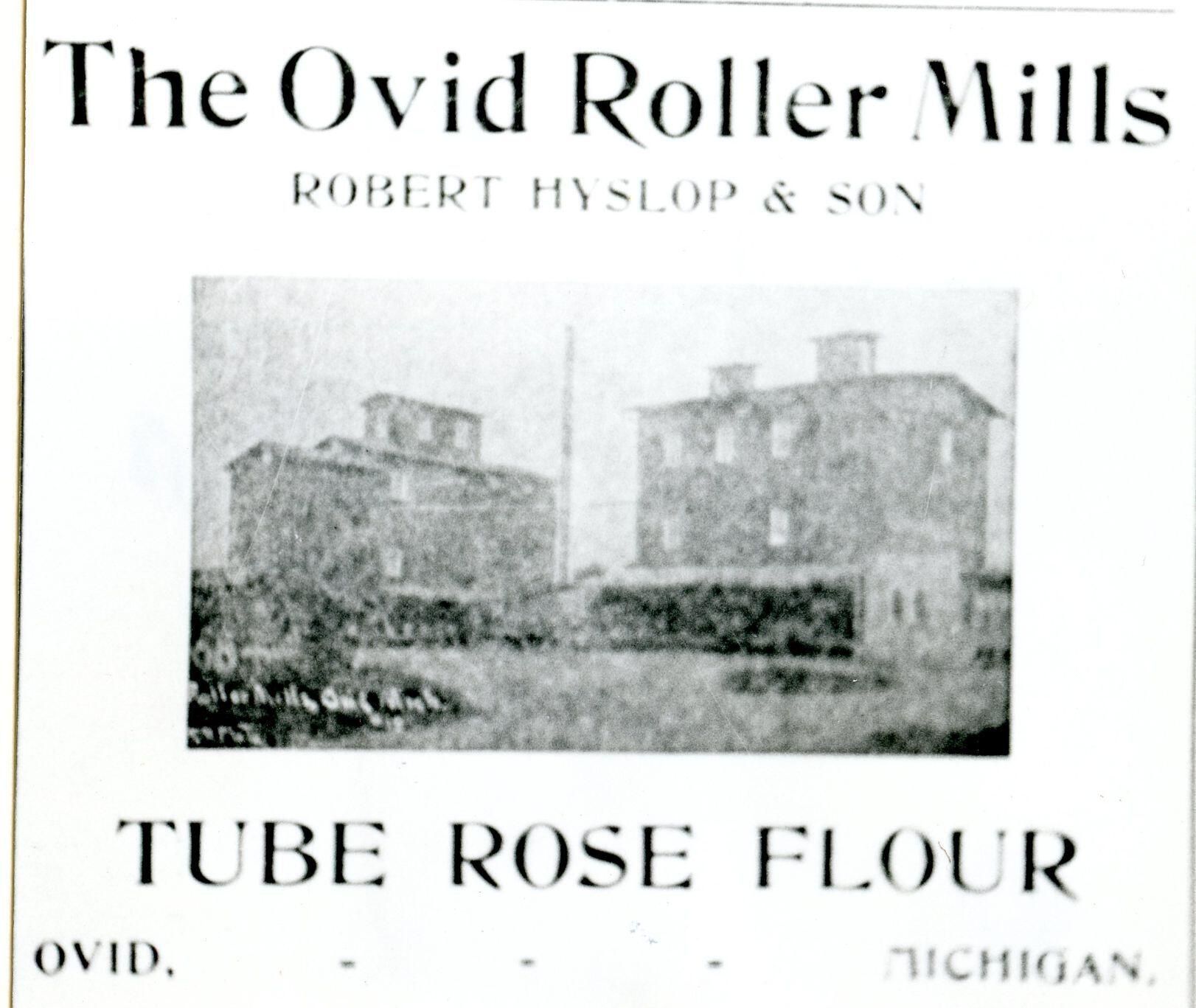 Ovid Roller Mills owned by Robert Hyslop & sons, Ovid, Michigan. Copy of photo used in Clinton County History (1980) page 718.