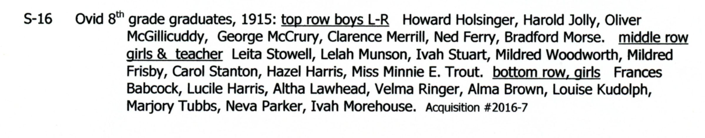 Ovid 8th grade graduates, 1915.