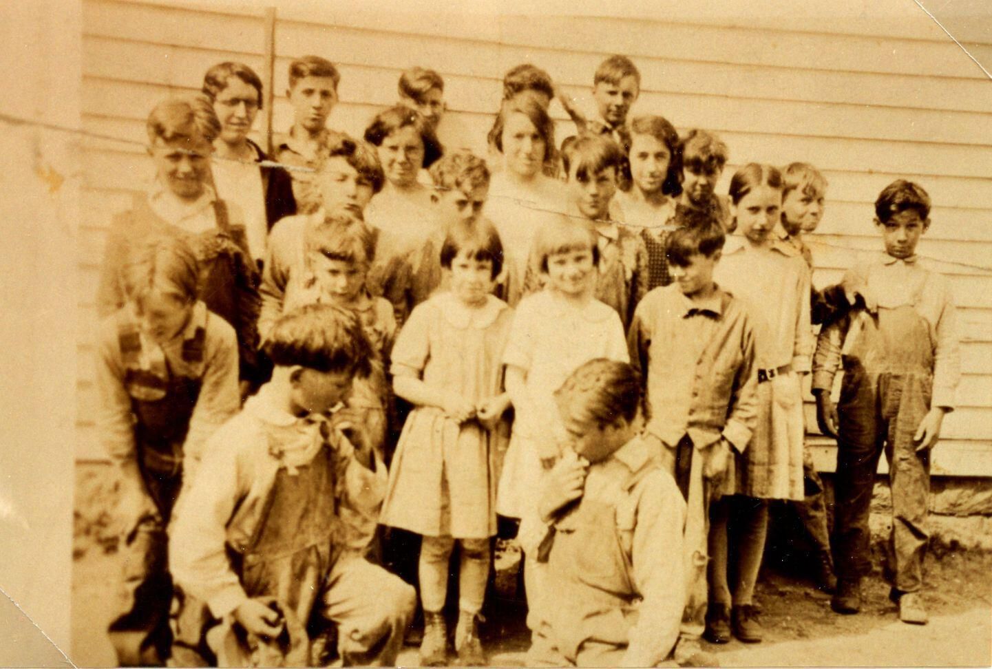 Page School, Duplain Township #2 1931-2. Hilda Moore (teacher) Includes members of the following families: Richard, Bohil, Kridner, Mikulka, Richart, Bryant, Godfrey, Roof, Brown, Brewbaker, Dush, and Morrison. (also O-53)
