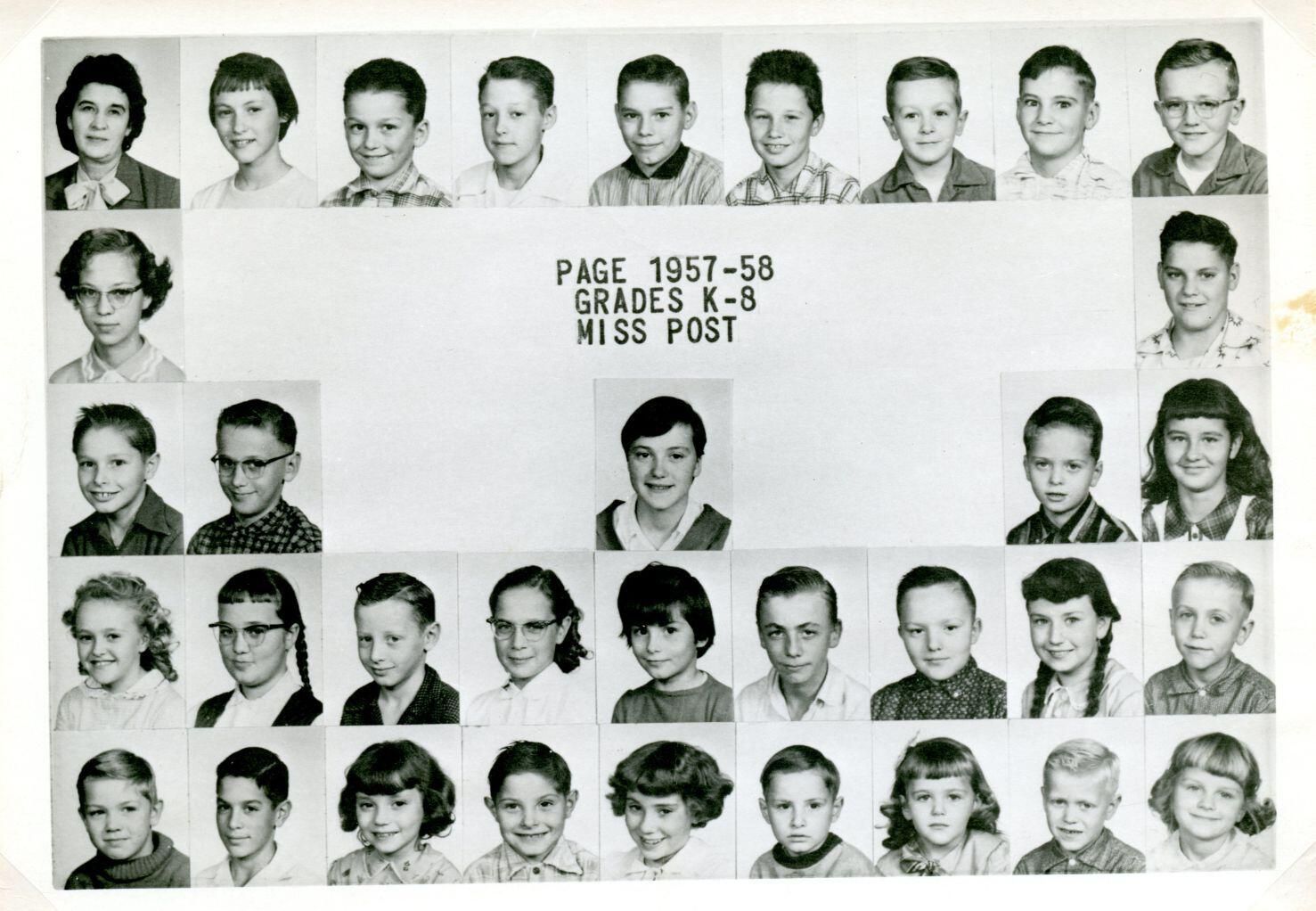 Page School, Duplain Township, 1957-8. Helen Post (teacher).