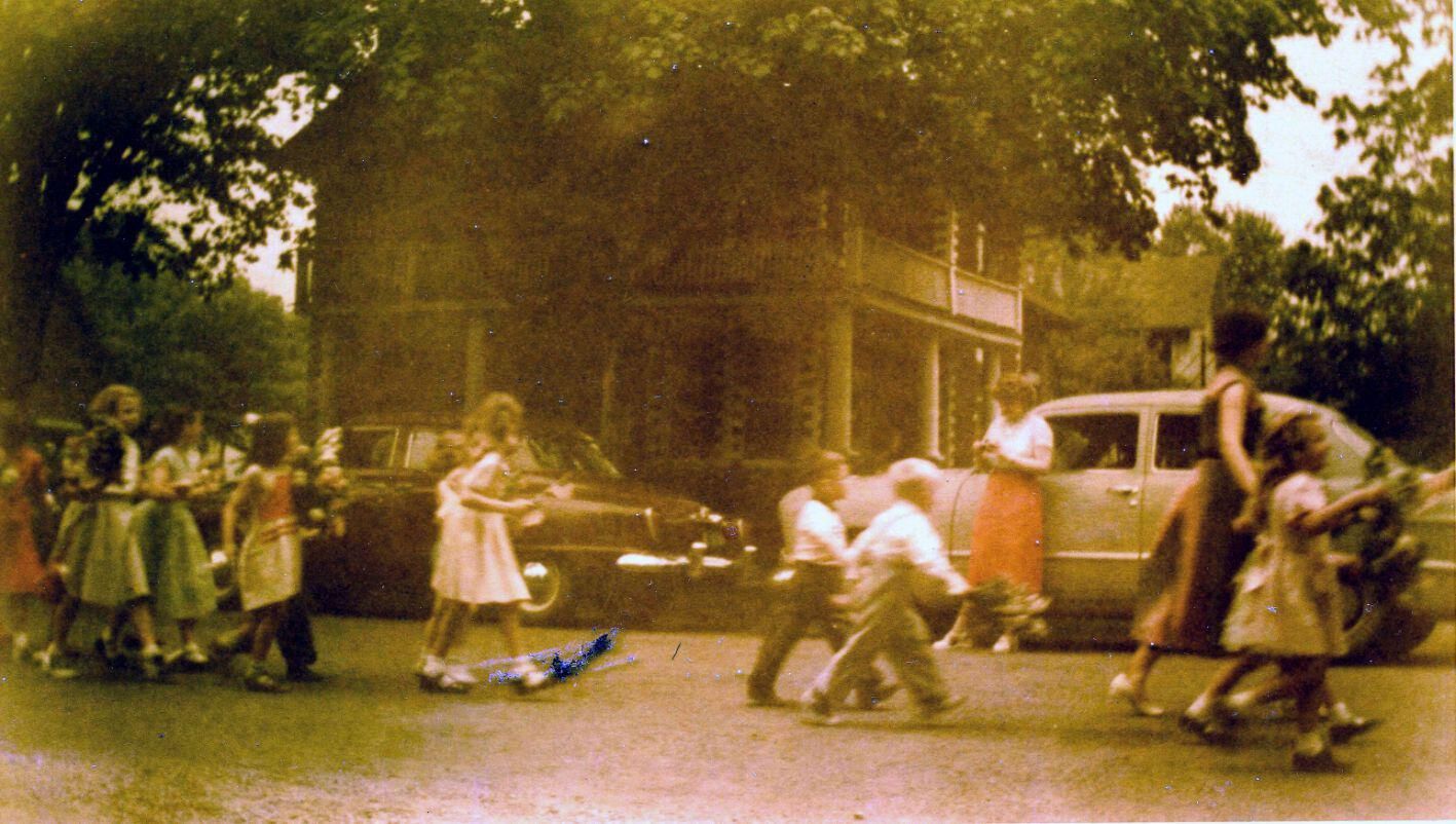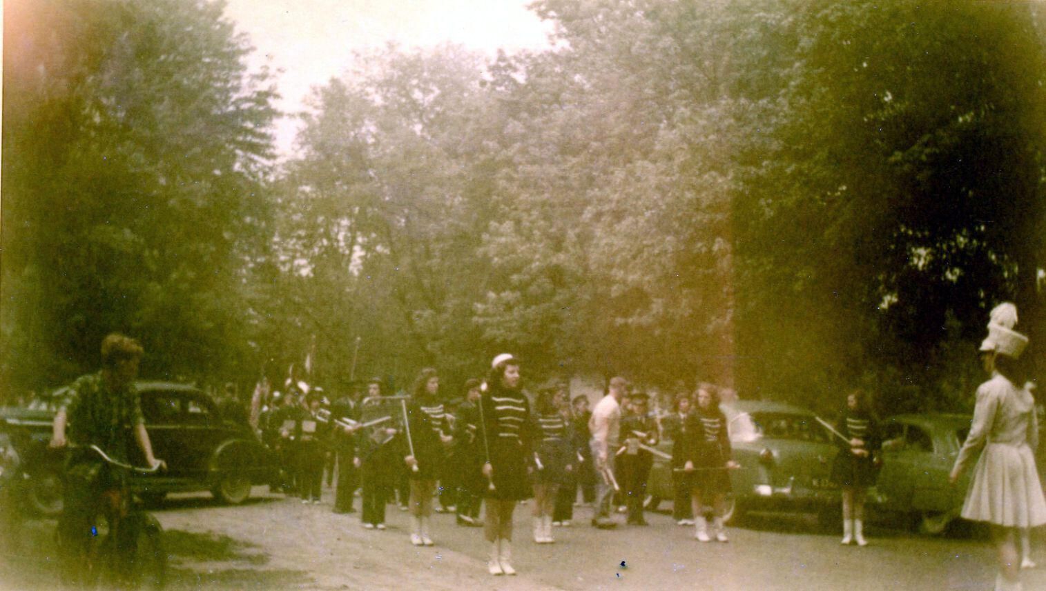 Parade. Probably in Maple Rapids. [color restoration of original]