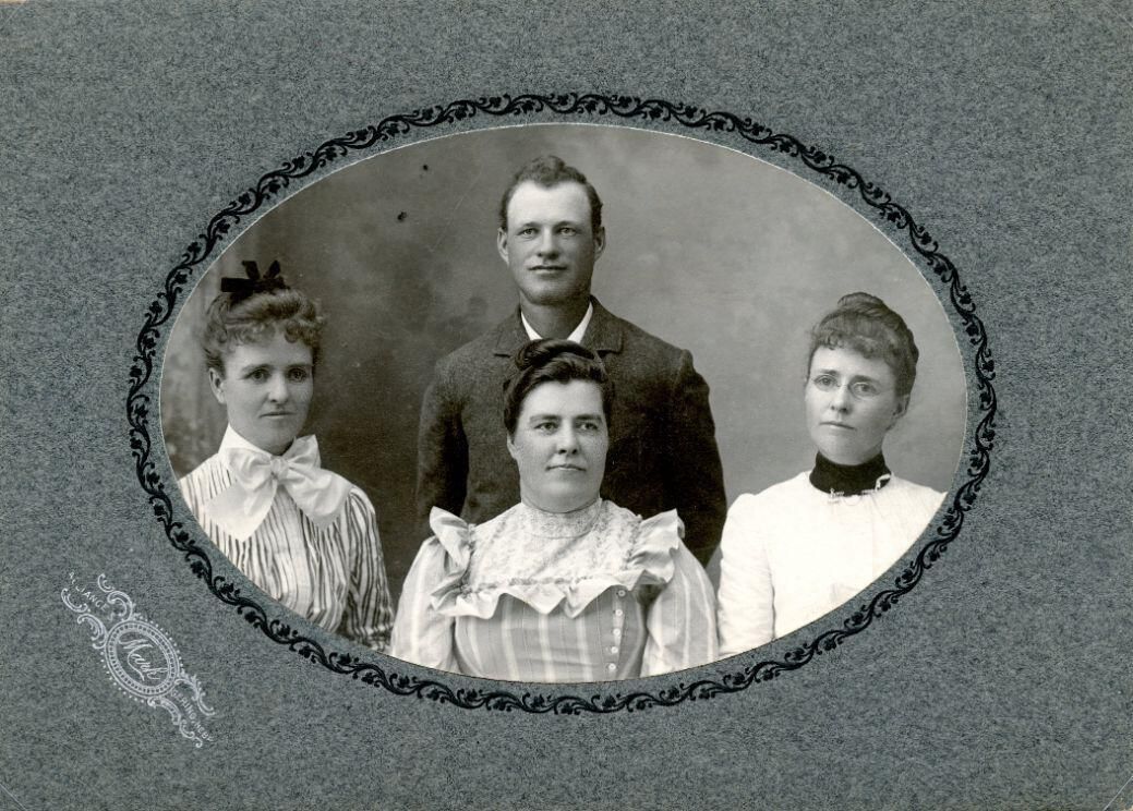 Children of Martin W. and Gratia Frances "Fannie" (Merwin) Parker. Jennie (Parker) Watson (wife of Seymour Watson), May (Parker) Watson (wife of Ralph Watson), Fannie (Pheris) Parker, George Parker (husband of Zella (Britton)). [Notation says Fannie (Pheris) Parker. The oldest sister was named Fannie.]
