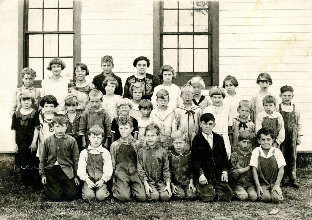 Parker School, Bingham Township Fractional #8 c1922-4. Teacher is (Cora?) Carroll. A copy is PI132-827.