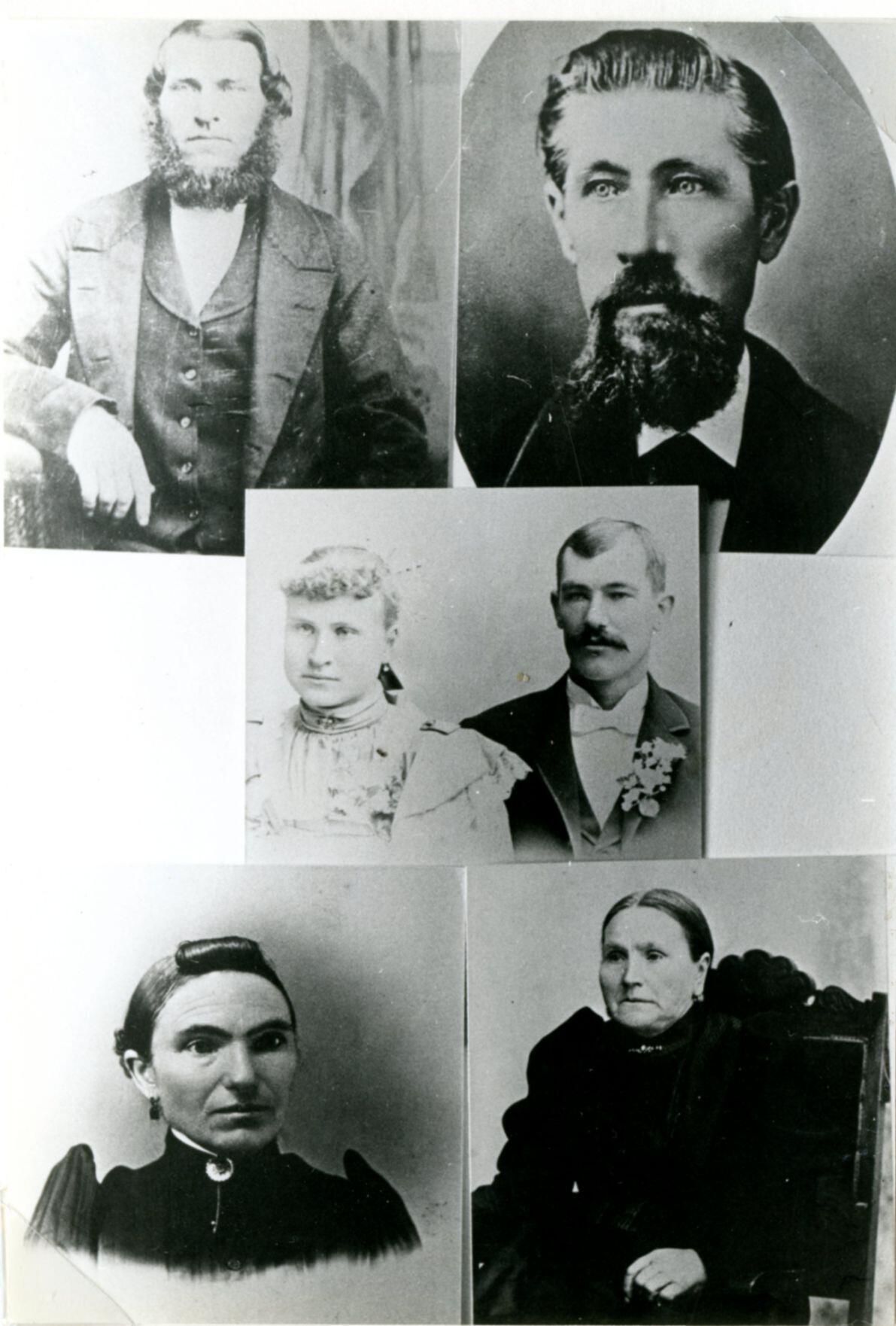 Pasch ancestors: (top) Frederick Budzier, Frederick Pasch, (middle) Johanna Budzier, Carl F. L. Pasch, (bottom) Johanna Brochor Budzier, Sophia Jacobs Pasch. From 1980 History of Clinton County page 229.