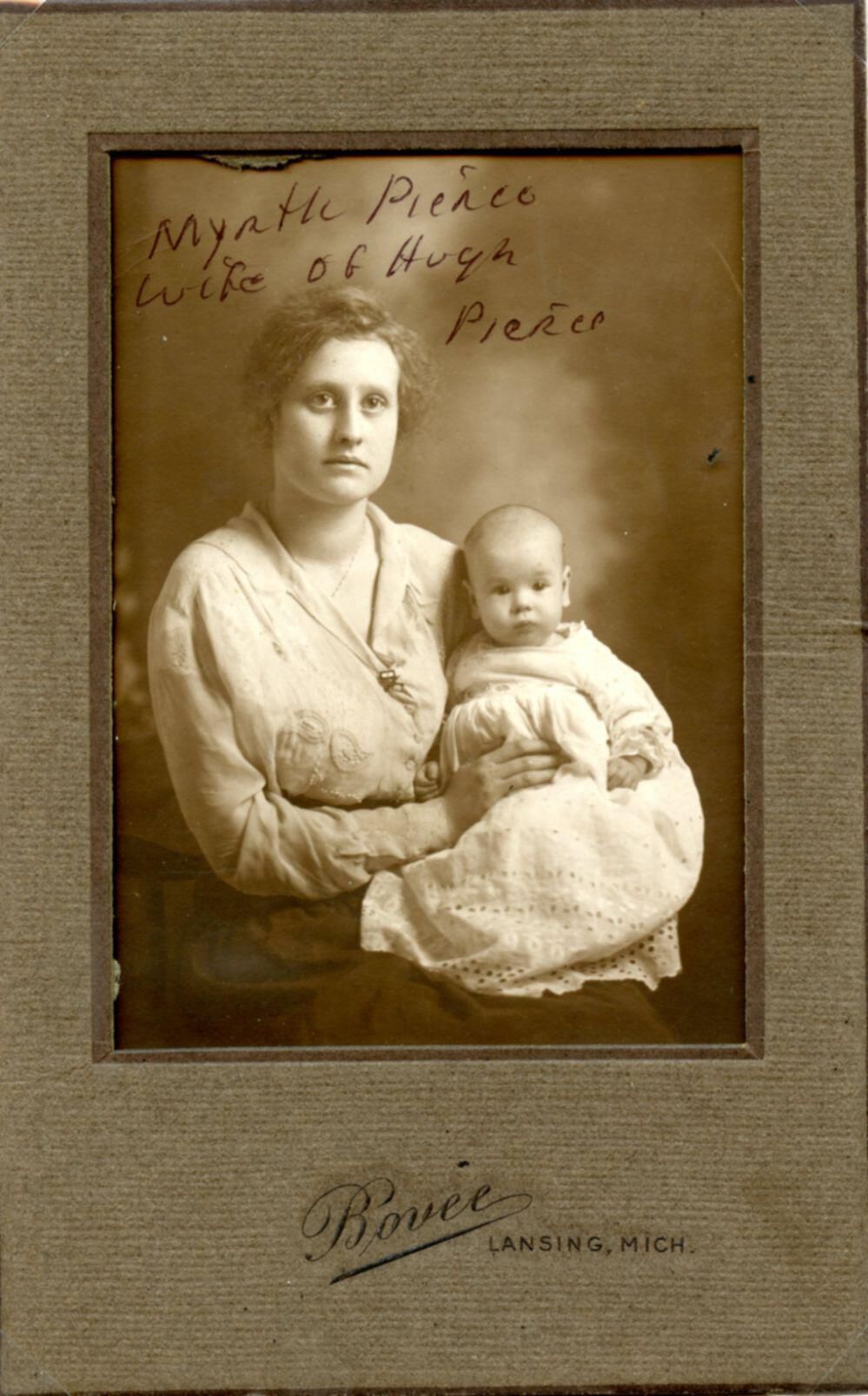 Myrtle Dean (Bennett) Pierce, wife of Hugh Husted Pierce. The child is possibly Geraldine.