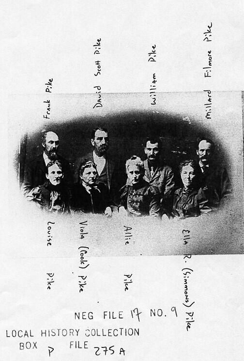 Frank Pike, David Scott Pike, William Pike, Millard Filmore Pike, Louise Pike, Viola (Cook) Pike, Allie Pike, Ella (Simmons) Pike (copy of an original owned by Gerald Pike)Acquisition