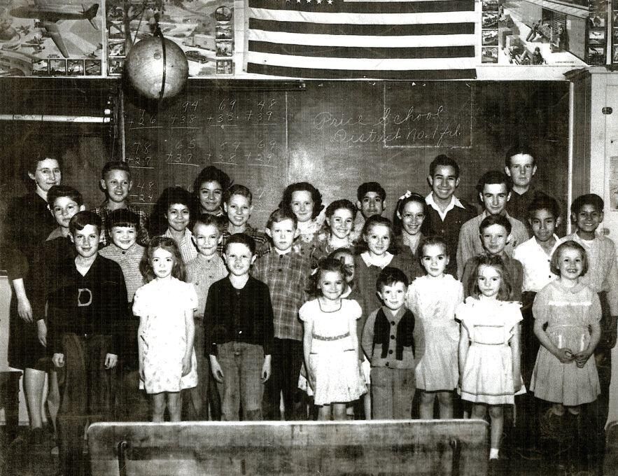 Price School, Victor Township, c1946. Cassie Stevens (teacher).