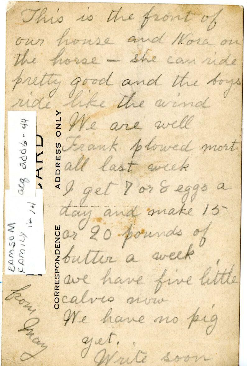 Ransom Family photos from 1860's to early 1900's. Unidentified. Postcard written by May and refers to Frank, Nora, and boys.