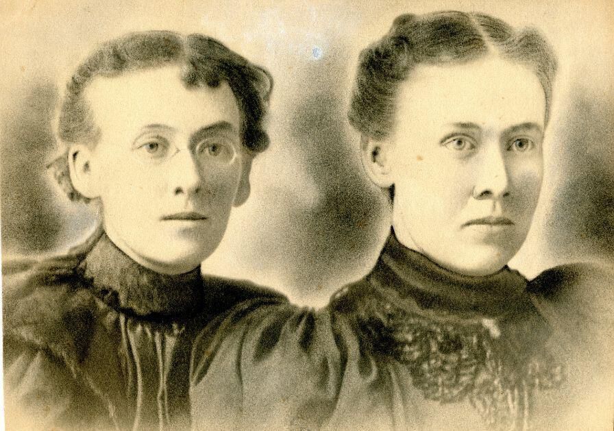 Emma and her sister Bertha Schray. Emma married Charles Feightling. Bertha married William G. Workman. Drawing.