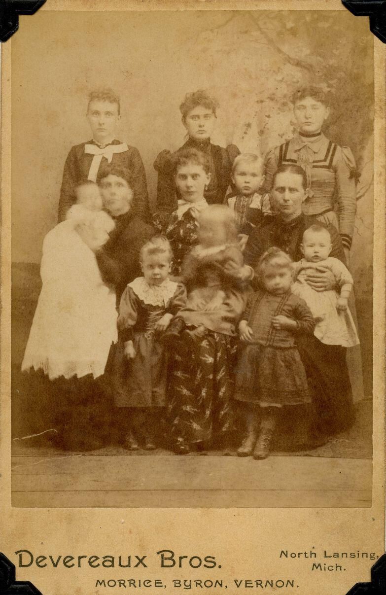 Mary Elizabeth (Swarthout Hodges) Seeley with daughters and grandchildren. Moore family history.