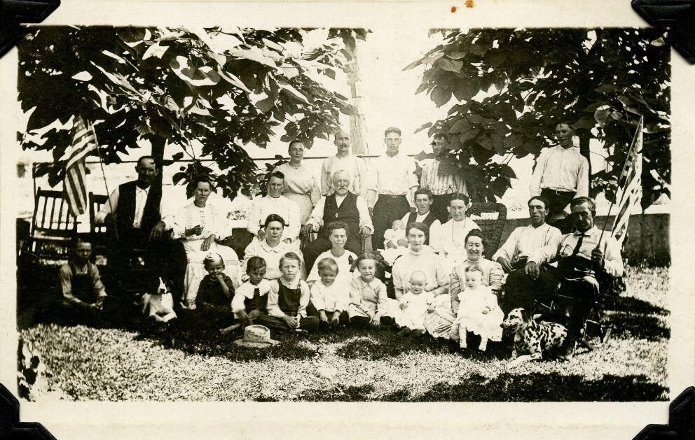 Seeley family c1920's with John and Mary Elizabeth Seeley, J. Earl Moore. Moore family history.