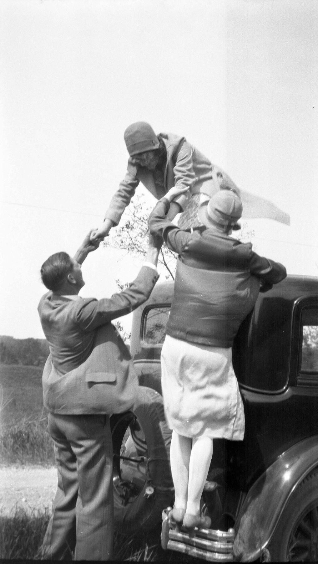 Shafley Family Standing on Cars