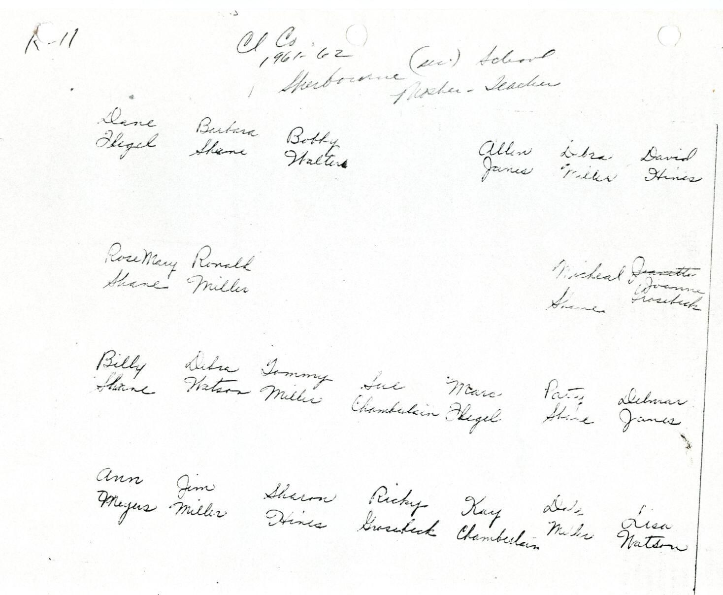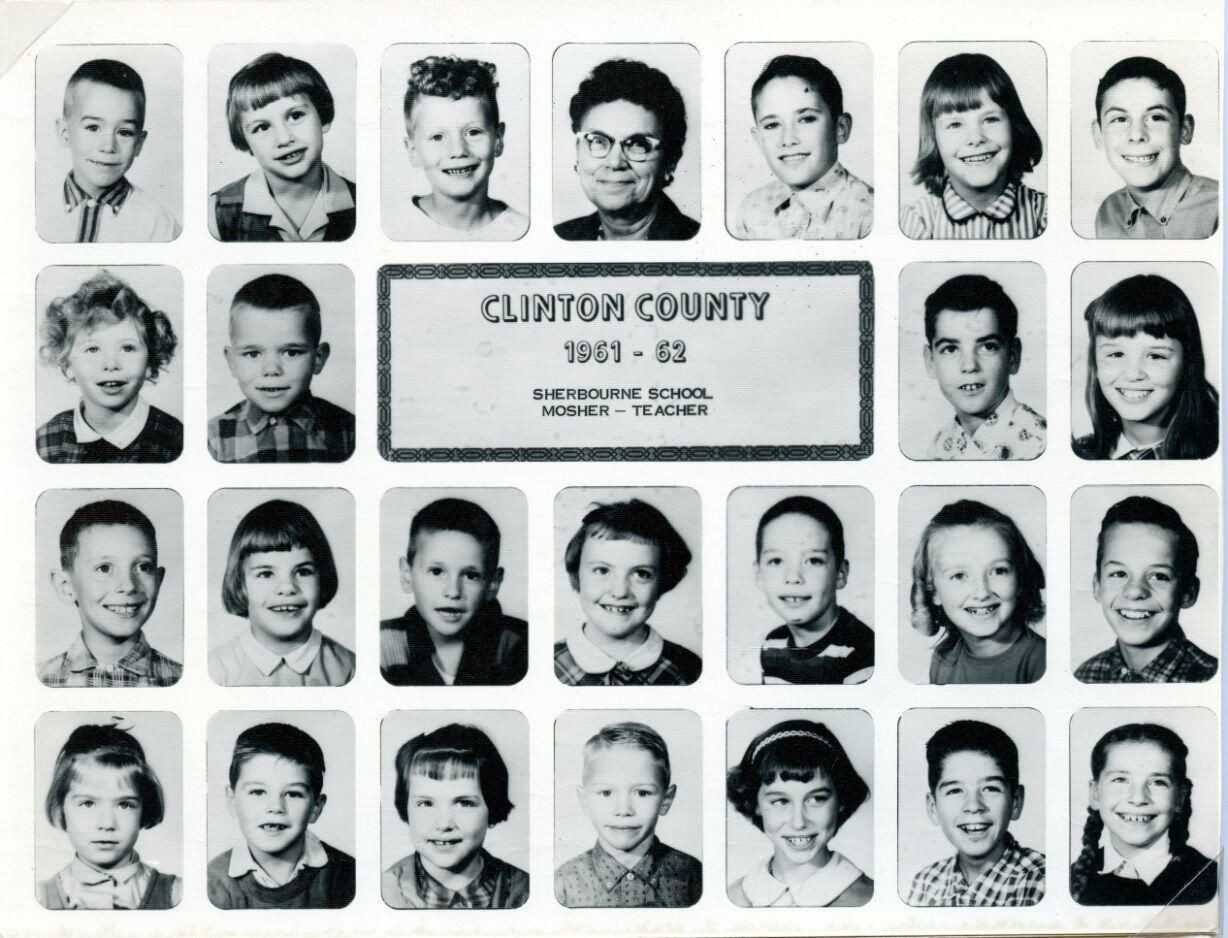 Sherburne School, Ovid Township, 1961-2, Louise Mosher (teacher). See identification.