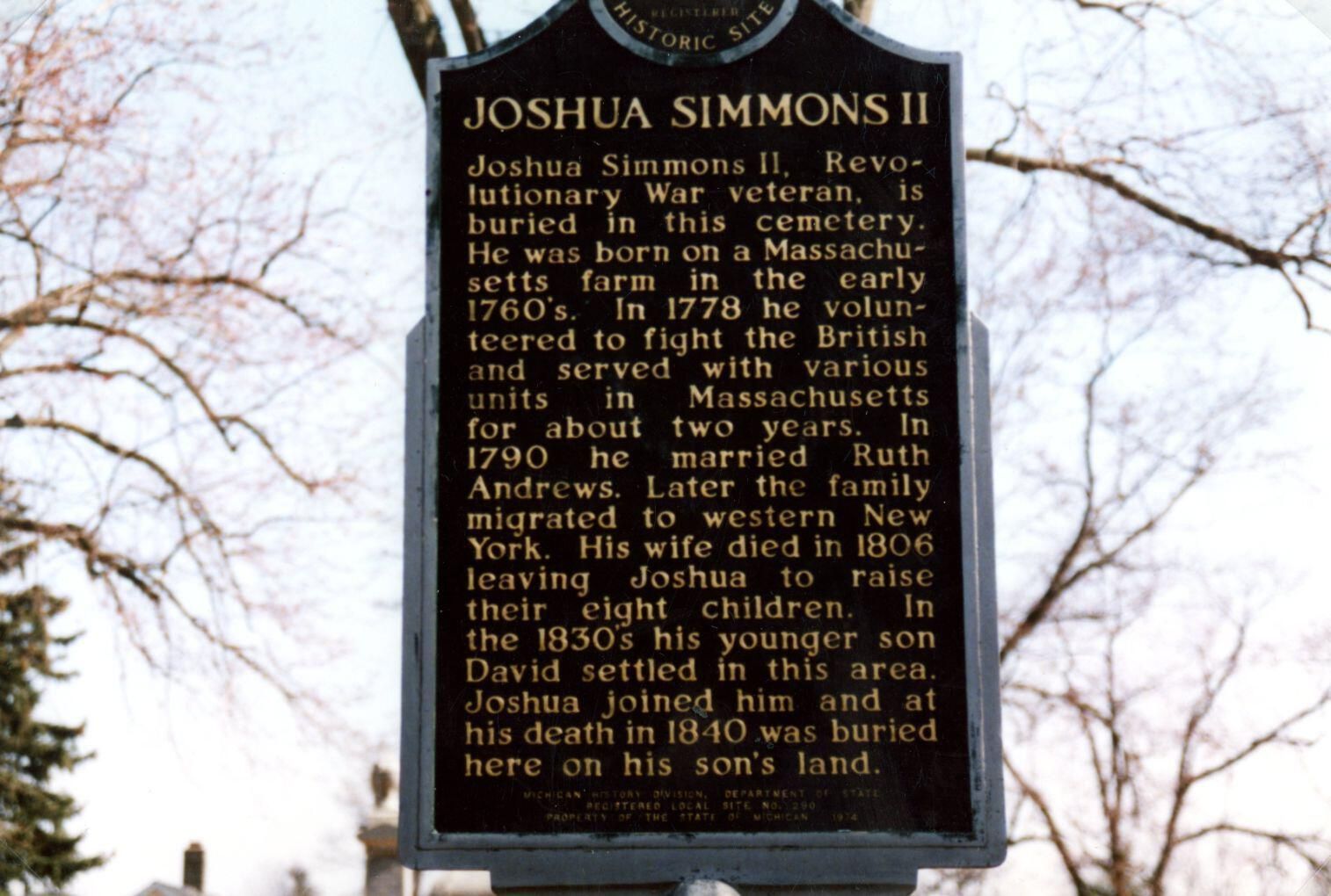 Joshua Simmons II, Revolutionary War veteran. April 2001. North Eagle Cemetery.