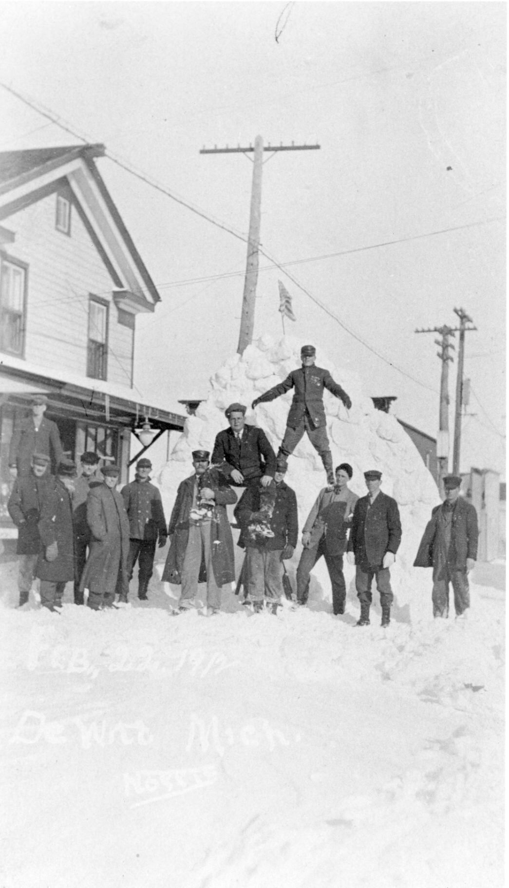 Big Snow with Carl VanFleet (tall on left) (copy of original owned by Ken Coin). Photo taken 22February1912 by Norris.