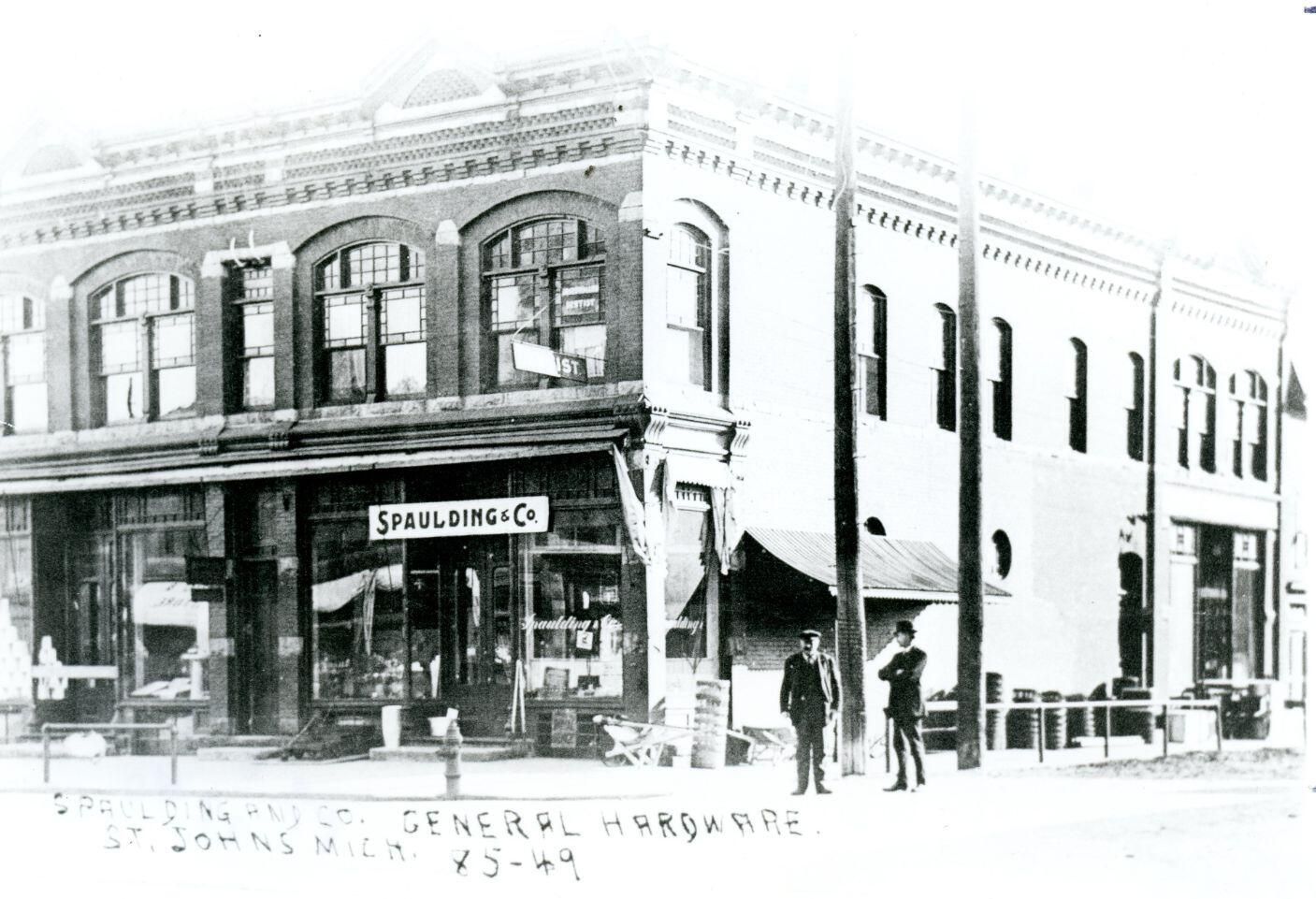 Spaulding & Co. general hardware, St. Johns. (Later was Dean's Hardware) Copy of photo used in Clinton County History (1980) page 678. Another copy is PI212-108.