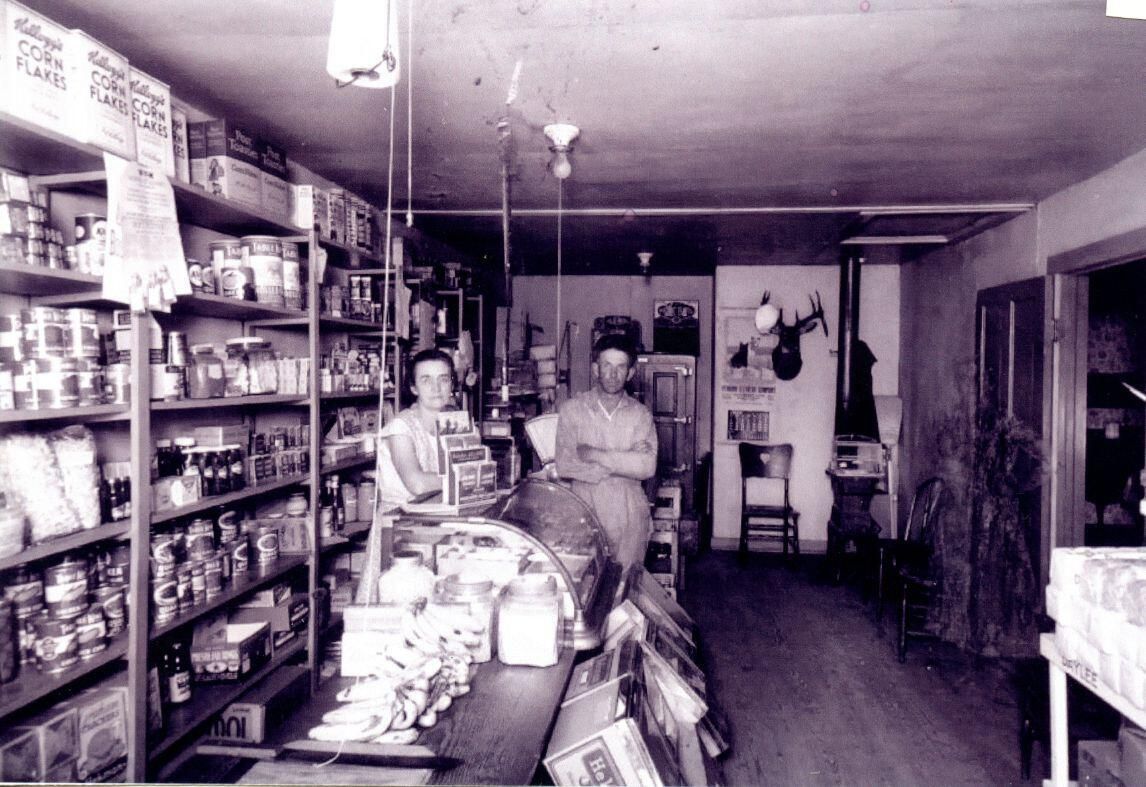 Sperry's Corners at Price and Airport Roads. N136 Dean and Luella Sperry inside grocery. N137 store. N138 house just west of Sperry's corners.