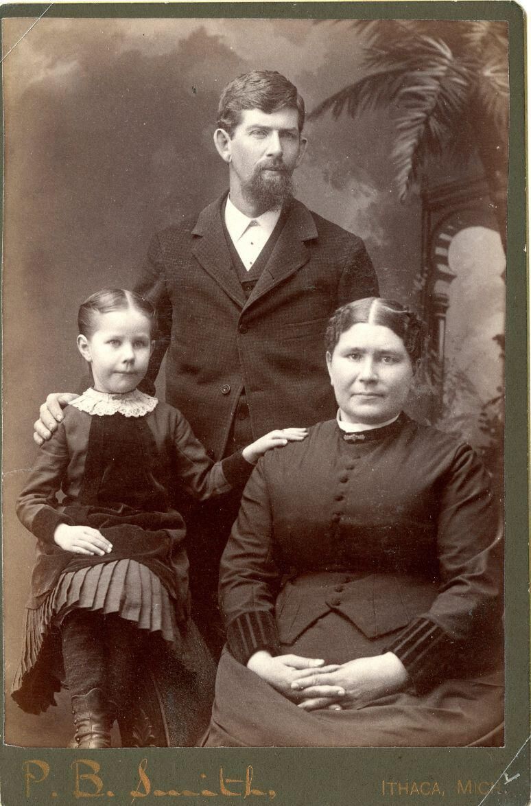 Charles, Mary, and Lilly Sprague. Lilly married Myron E. Ward. Photo by P. B. Smith of Ithaca, Michigan.