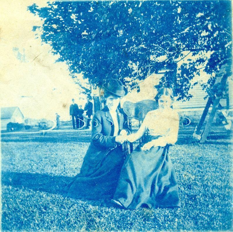 From Myron and Lily Sprague Estate. On right is Lily (Sprague) Ward. She was the daughter of Charles and Mary (Fries) Sprague. On left might be her mother Mary (Fries) Sprague.