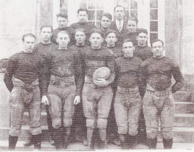 St. Johns Football team, 1925. Larry Simpson is holding the football. Ivan Simpson is top row far left.