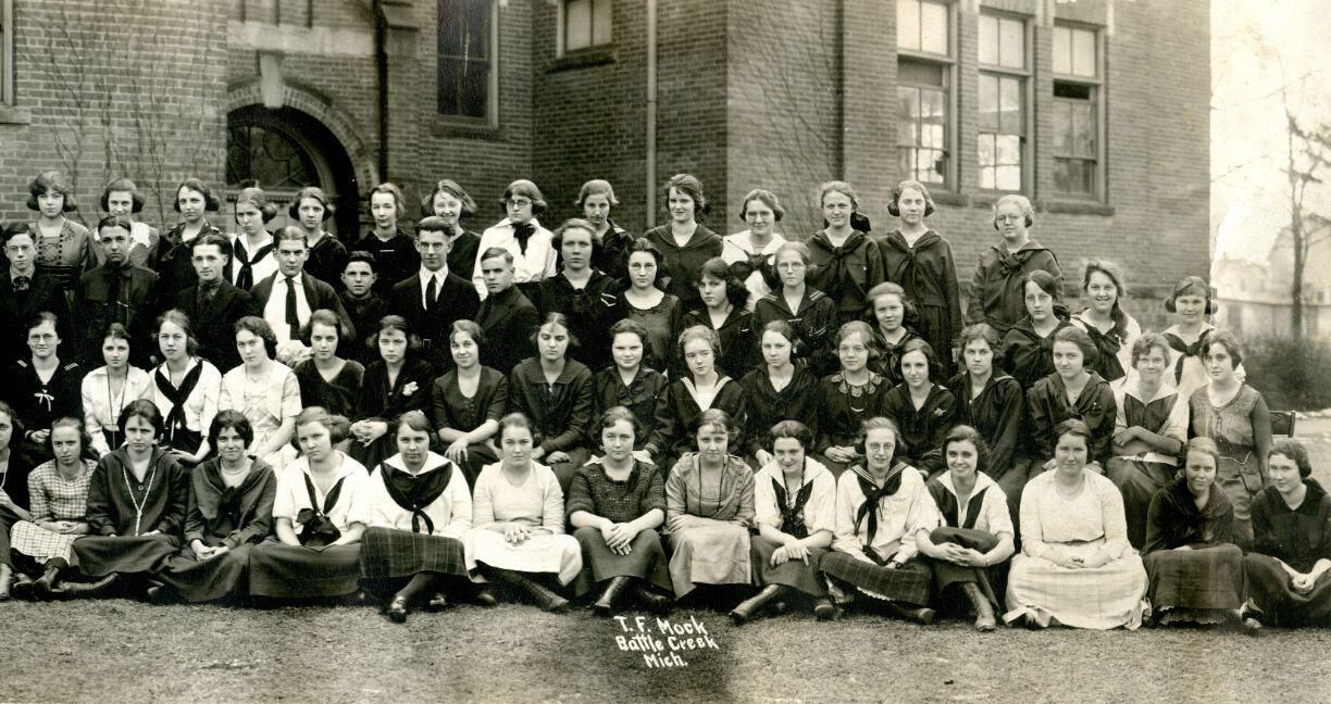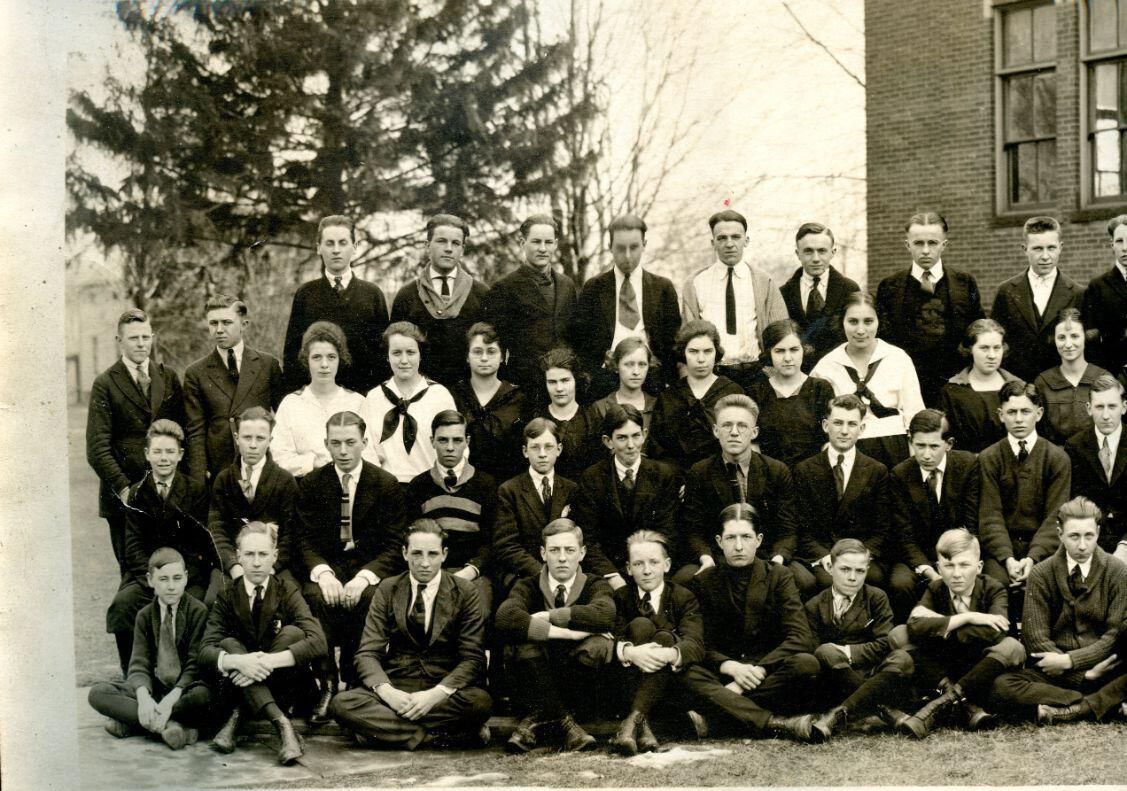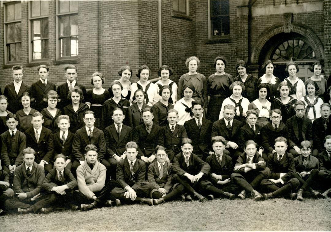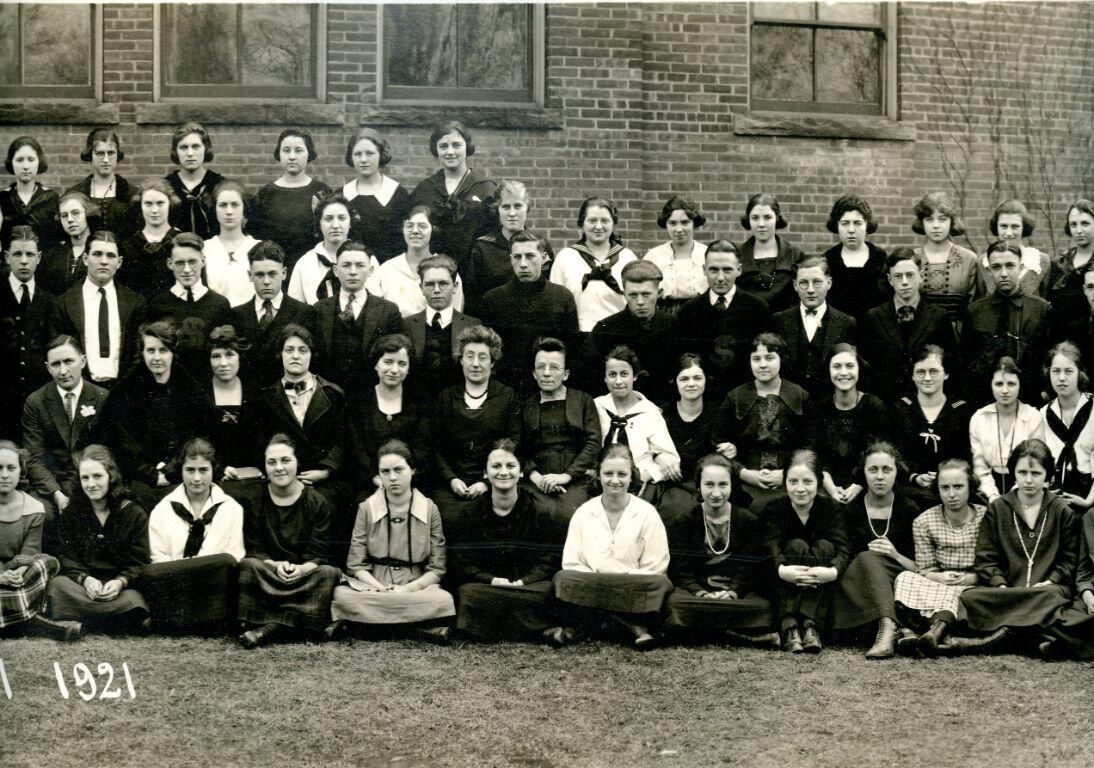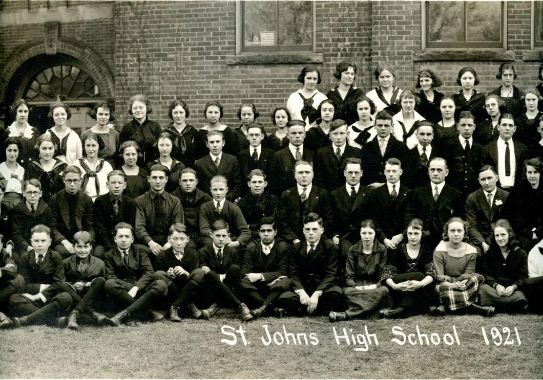 St. Johns High School (Central) 1921 students and teachers. Panoramic view.